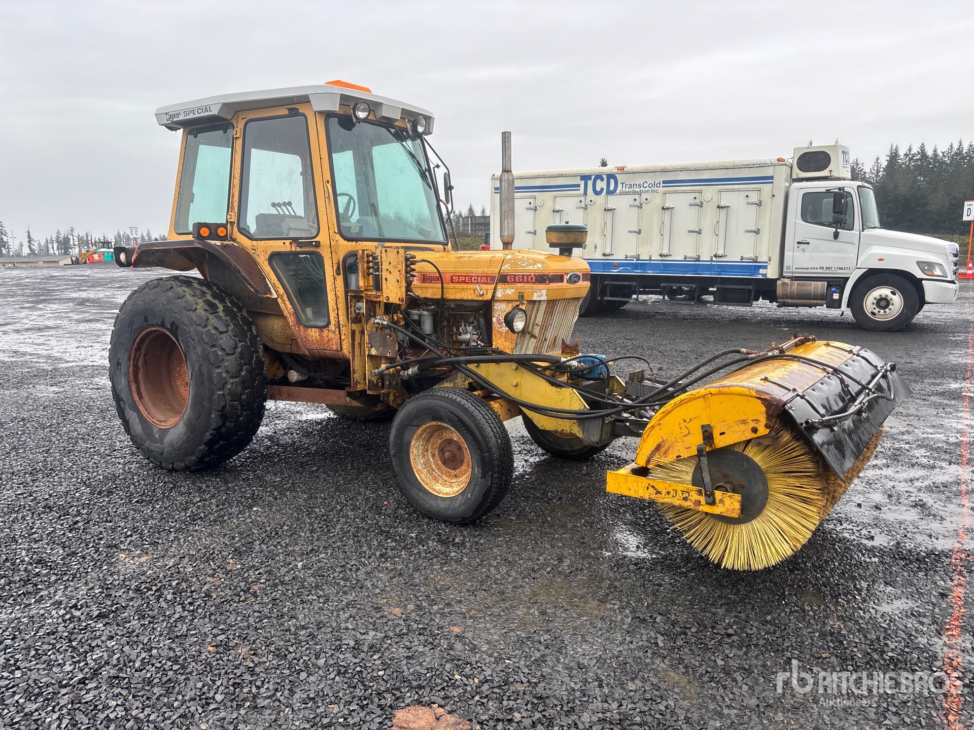 Located in Lane 6 Spot 7, Enclosed Cab, Air Conditioner, Reverse Drive Mode, 4 Forward, Sweepster S32 Broom, Front PTO, 235/85R16 Front Tires, 18.4x26 Rear Tires