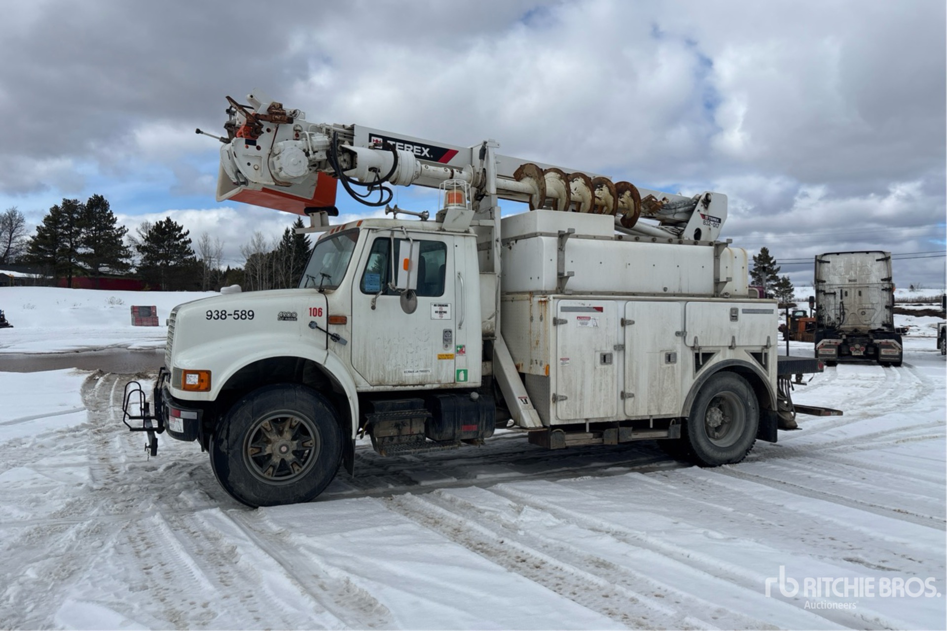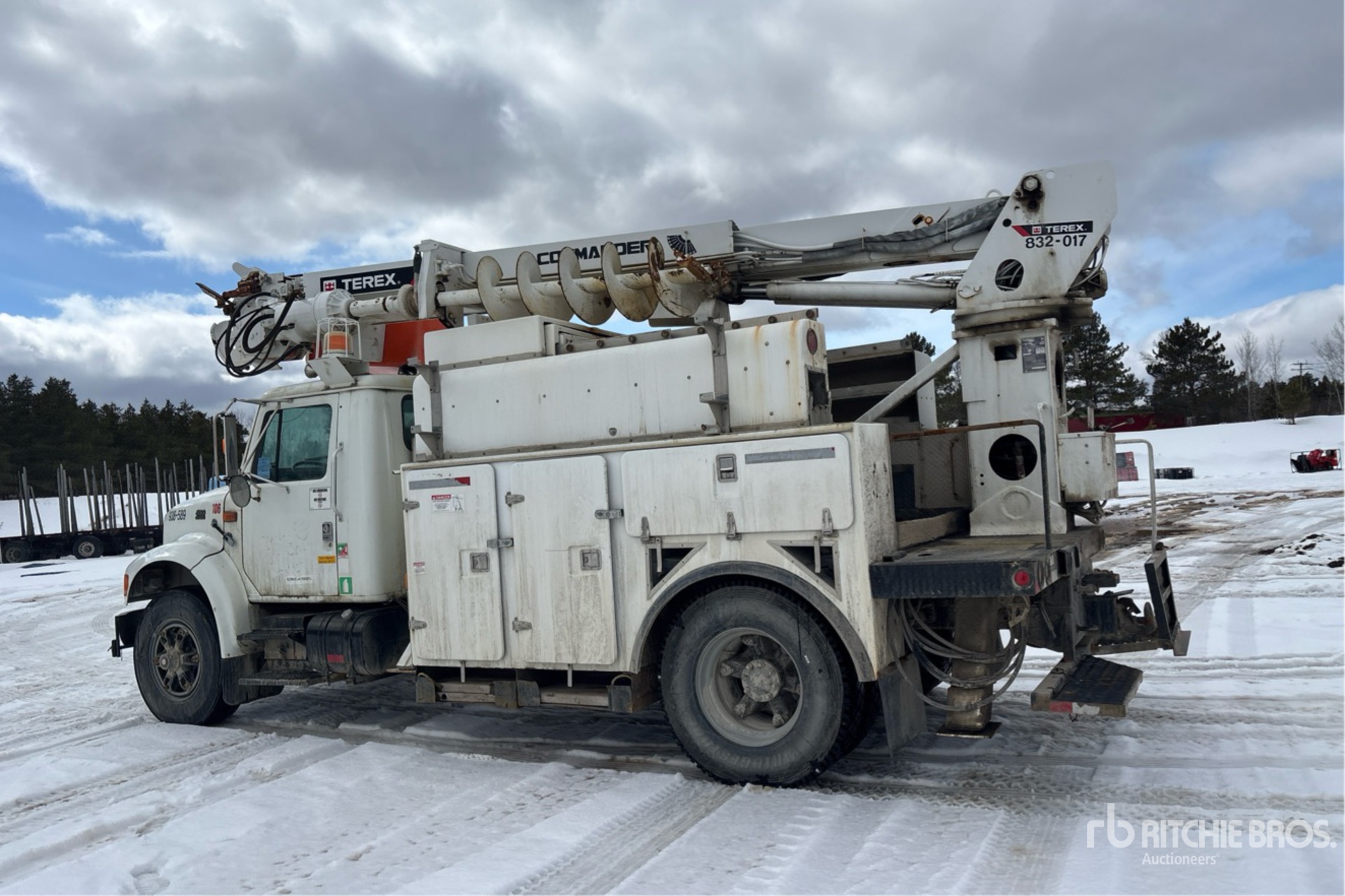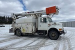 International 6 Cylinder Diesel Engine, US EPA Label, Automatic Transmission, 11R22.5 Front Tires, 11R22.5 Rear Tires, Spring Suspension, 180 in Wheelbase, PTO, Hydraulic System, 1 Section Boom, Out and Down Outriggers, Rear Outriggers, 1999 commander C4047 1 Section Hydraulic Crane, 12 ft x 100 in Bed, Winch, Pintle Hitch
