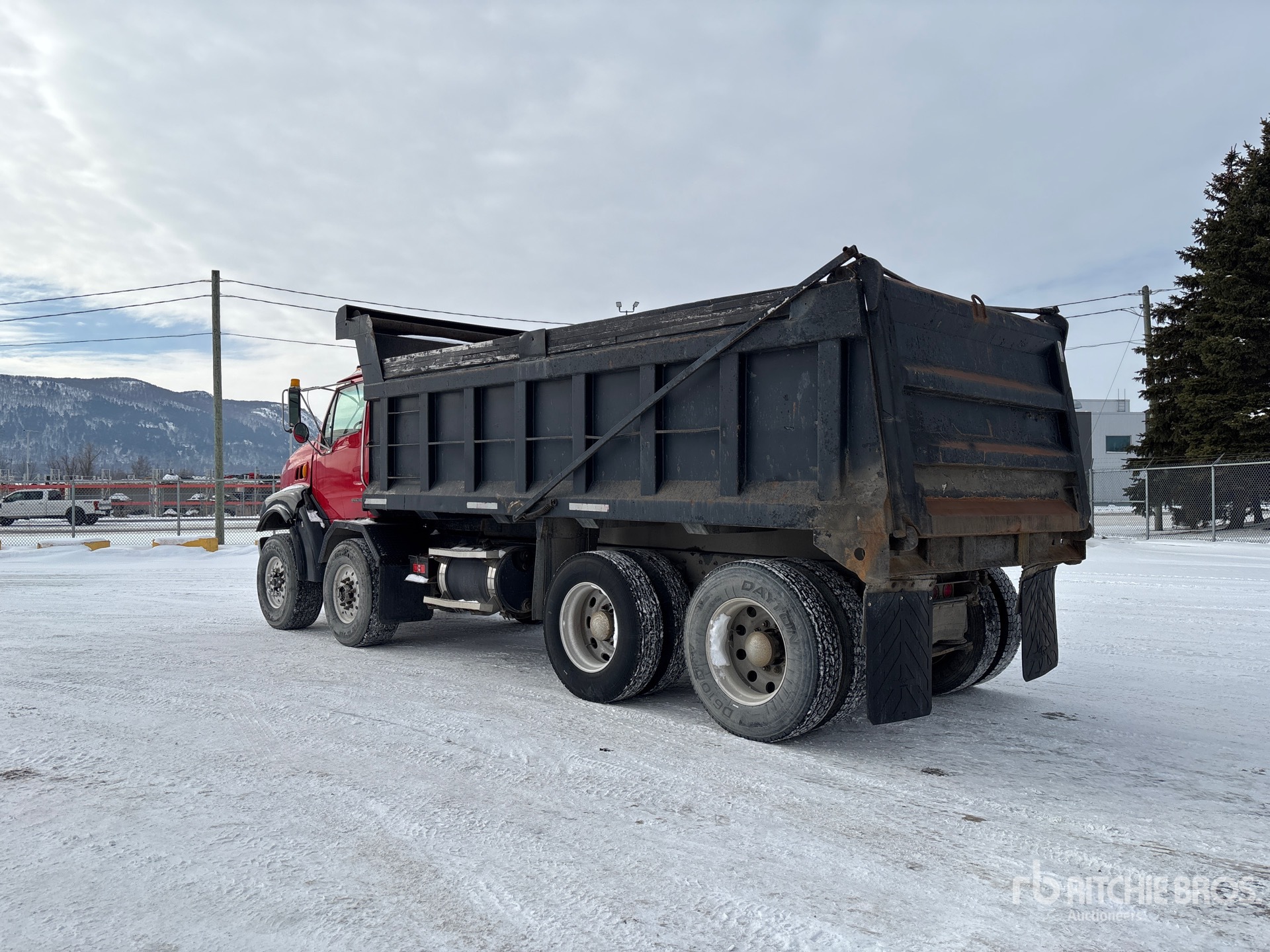 Located in Lane 6 Spot 14, Cat C15 6 Cylinder Diesel 475 hp Engine, 32960 Engine hrs, Eaton Fuller 18-Speed Manual Transmission, Differential Lock, 40000 lb Front Axle, 46000 lb Rears, 66000 lb GVWR, Air Ride Cab, Aluminum Outer Wheels, 425/65R22.5 Front Tires, 11R24.5 Rear Tires, Dual Steering Boxes, Double Frame, Airliner Air Ride Suspension, 210 in Wheelbase, PTO, 19 ft 6 in Long x 4 ft High Steel Body, Air Powered Roll Tarp