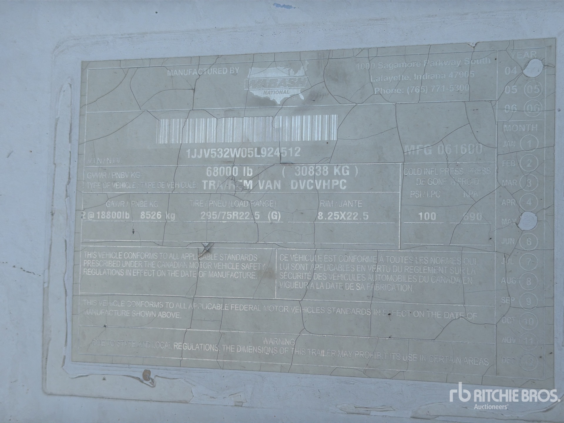 Spring Sliding Suspension, Hardwood Floor, Swing Door, 295/75R22.5 Tires 68000 lb GVWR