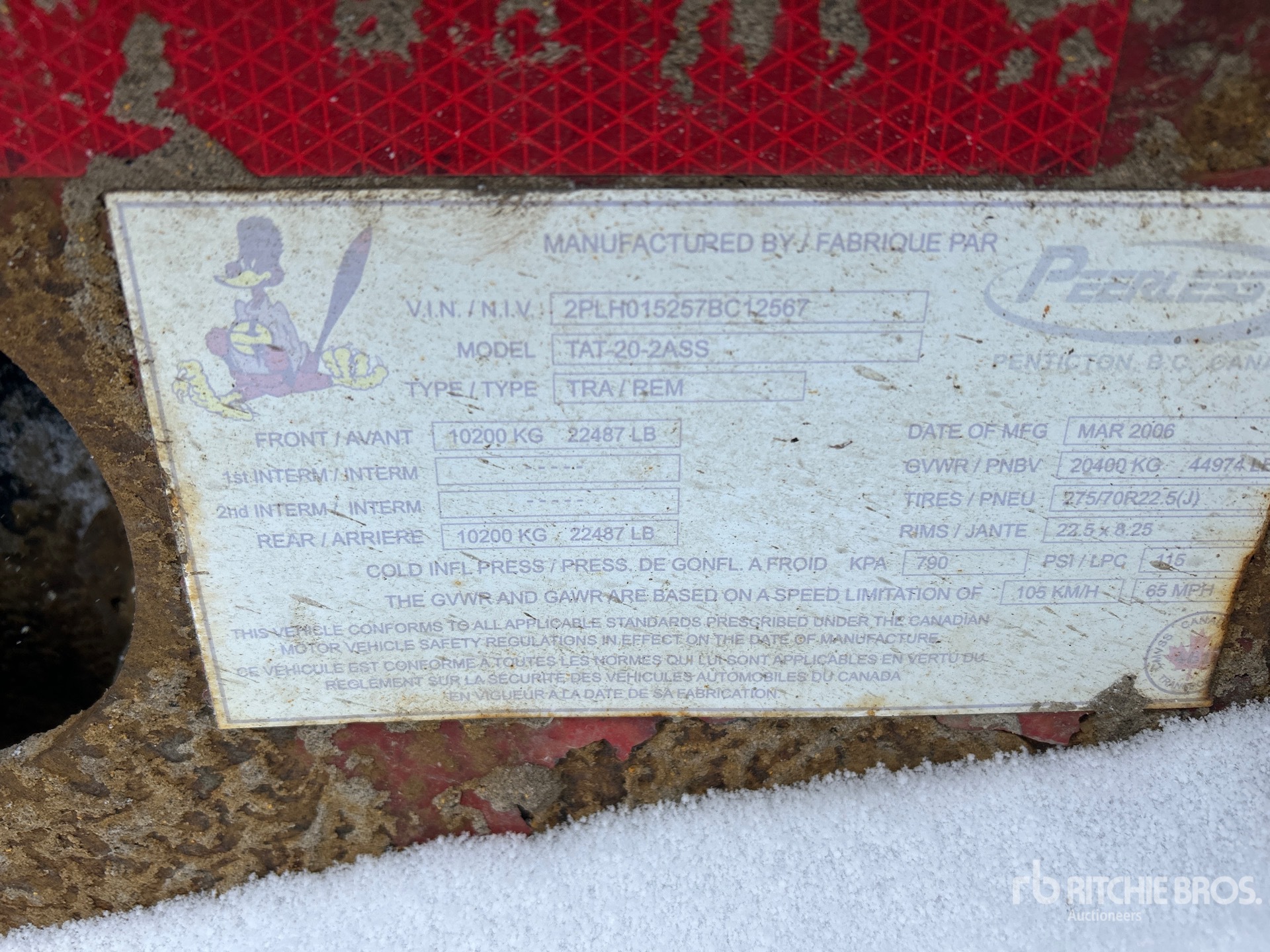The detailed equipment information is limited in scope, and Ritchie Bros. Auctioneers has not inspected any aspects or components of the equipment other than those expressly set forth herein. Unless expressly stated, we make no representations or warranties, express or implied, concerning the equipment or its components, including without limitation any representations or warranties concerning functionality, conformity or compliance with any safety standard or requirement of any applicable authority or regulatory body, fitness for any particular purpose, or merchantability. You are strongly advised to perform your own detailed inspection of the equipment prior to bidding.