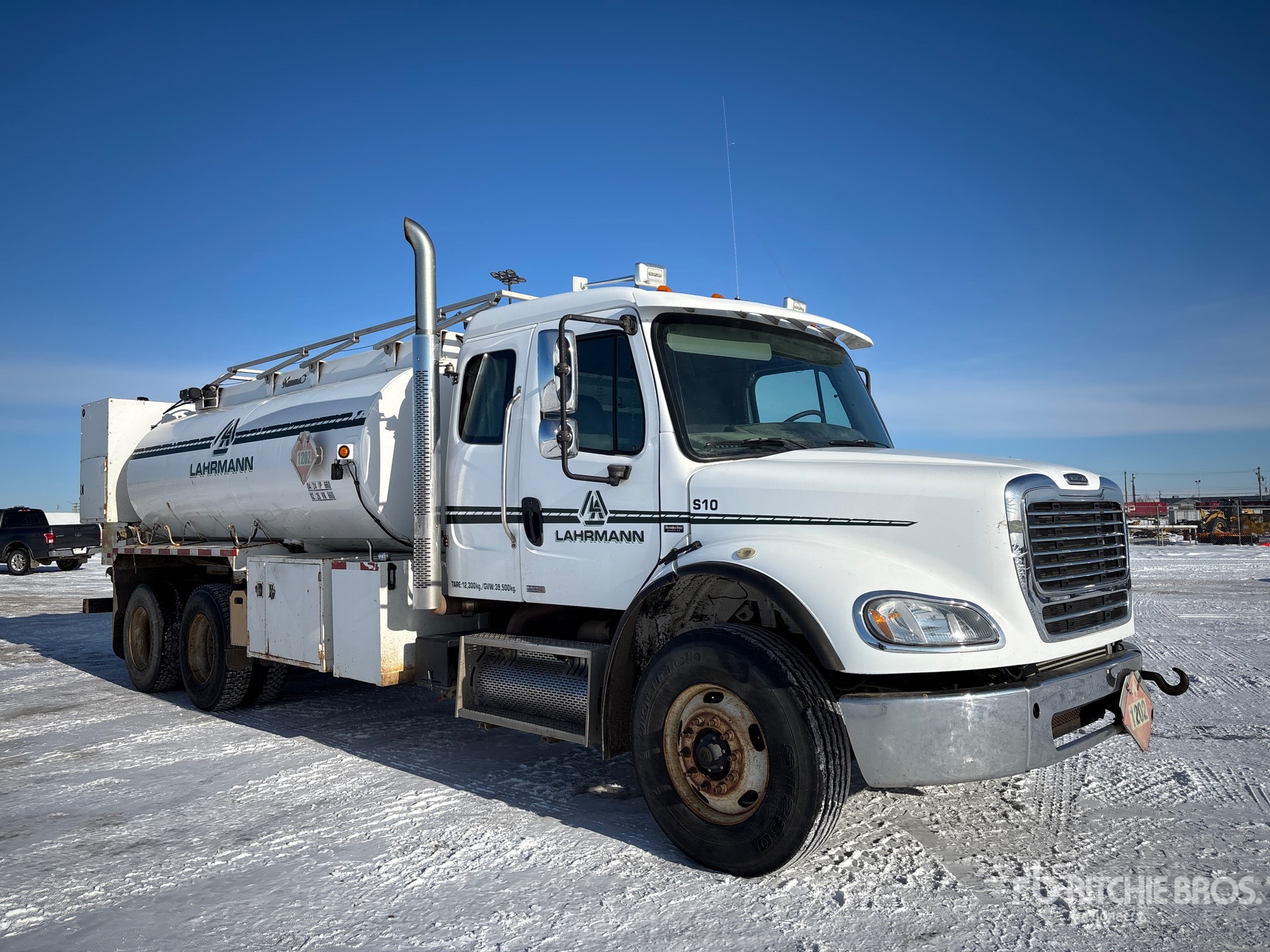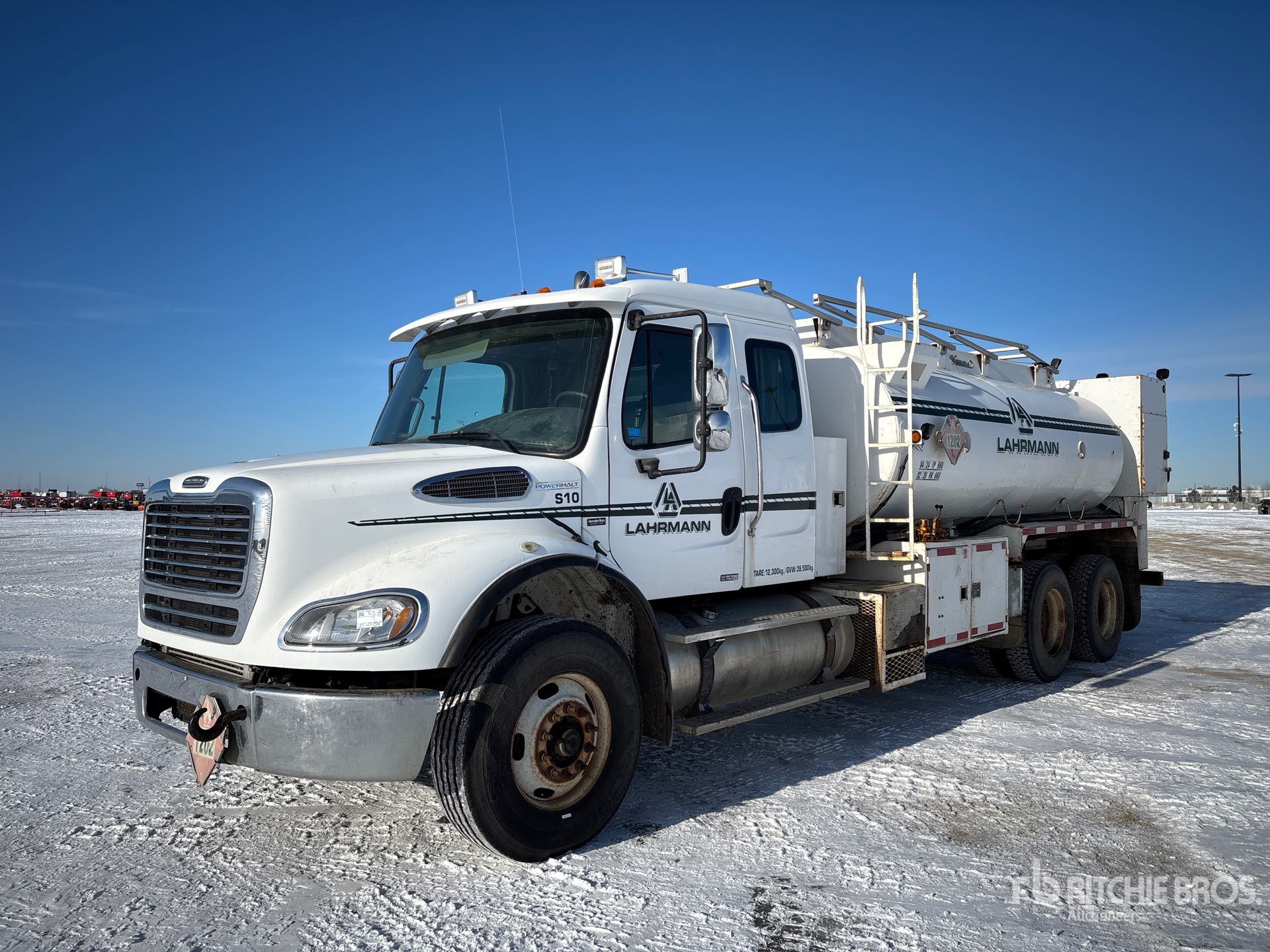 Mercedes-Benz OM460 6 Cylinder 12.8 L Diesel 450 hp Engine, 2007 US EPA Label, CARB Compliant, Positive Air Shutoff, 13630 Engine hrs, Engine Brake, Eaton Fuller RTLO-16918B 18-Speed Manual Transmission, Differential Lock, 16000 lb Front Axle, 40000 lb Rears, Meritor RT-40-145 Drive Axles, 4.33:1 Axle Ratio, 56000 lb GVWR, Air Ride Cab, 315/80R22.5 Front Tires, 11R22.5 Rear Tires, Double Frame, Airliner Air Ride Suspension, 270 in Wheelbase, PTO, 2009 Hamm’s 13425 L Steel Tank, 2 Compartments, TC406 Code, Catwalk w/Guardrails, Corman Rupp Hydraulic Driven Pump, 4 Reels, Pintle Hitch, Complete-Dispersal-for-Lahrmann-Construction-Inc