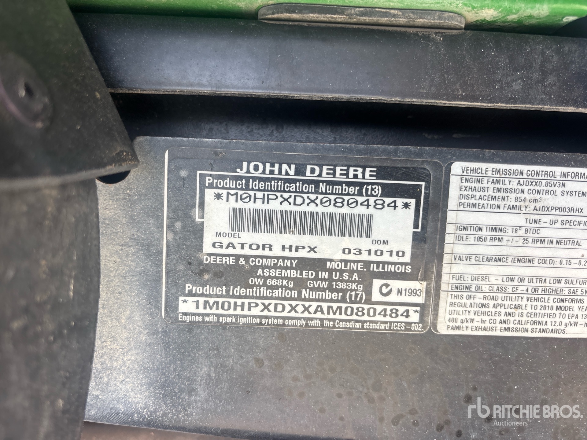Open Operator Station, 2 Passenger, Manual Dump Bed, 2010 US EPA Label, John Deere 3TNV70-XJUV 3 Cylinder 854 cc Diesel Engine