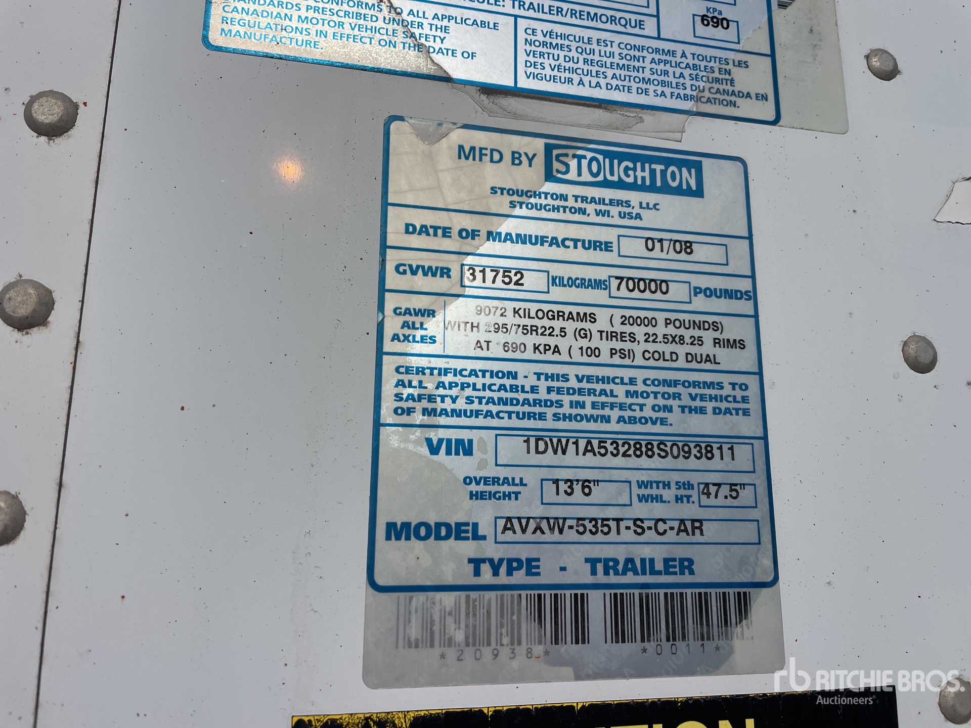 Air Ride Sliding Suspension, Hardwood Floor, Swing Door, 295/75R22.5 Tires 70000 lb GVWR
