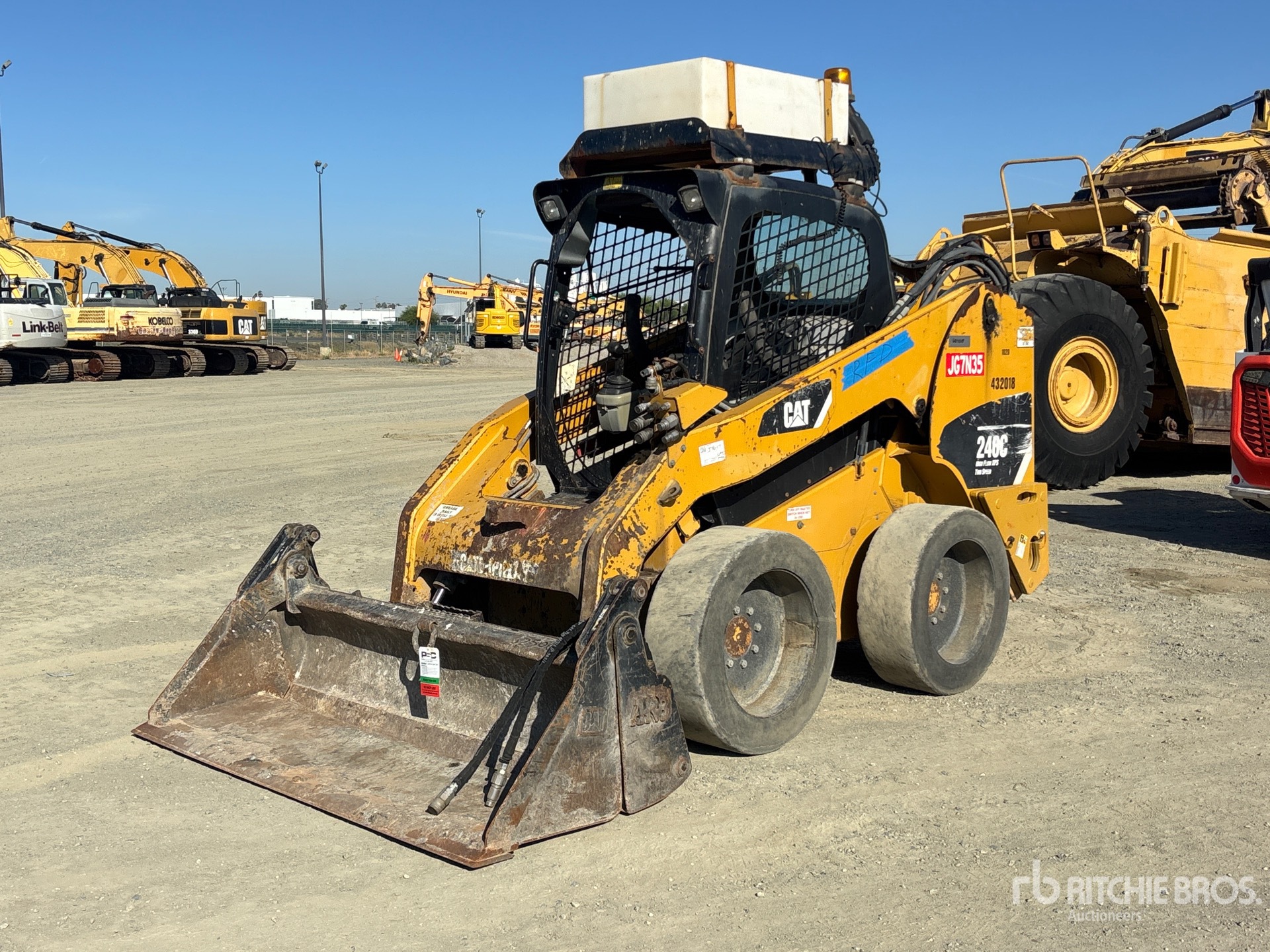 Enclosed Cab (Door missing), Joystick Steering, Solid Tires, 8 Pin Electric Kit, Manual Coupler, 72 in Multi-Purpose Bucket