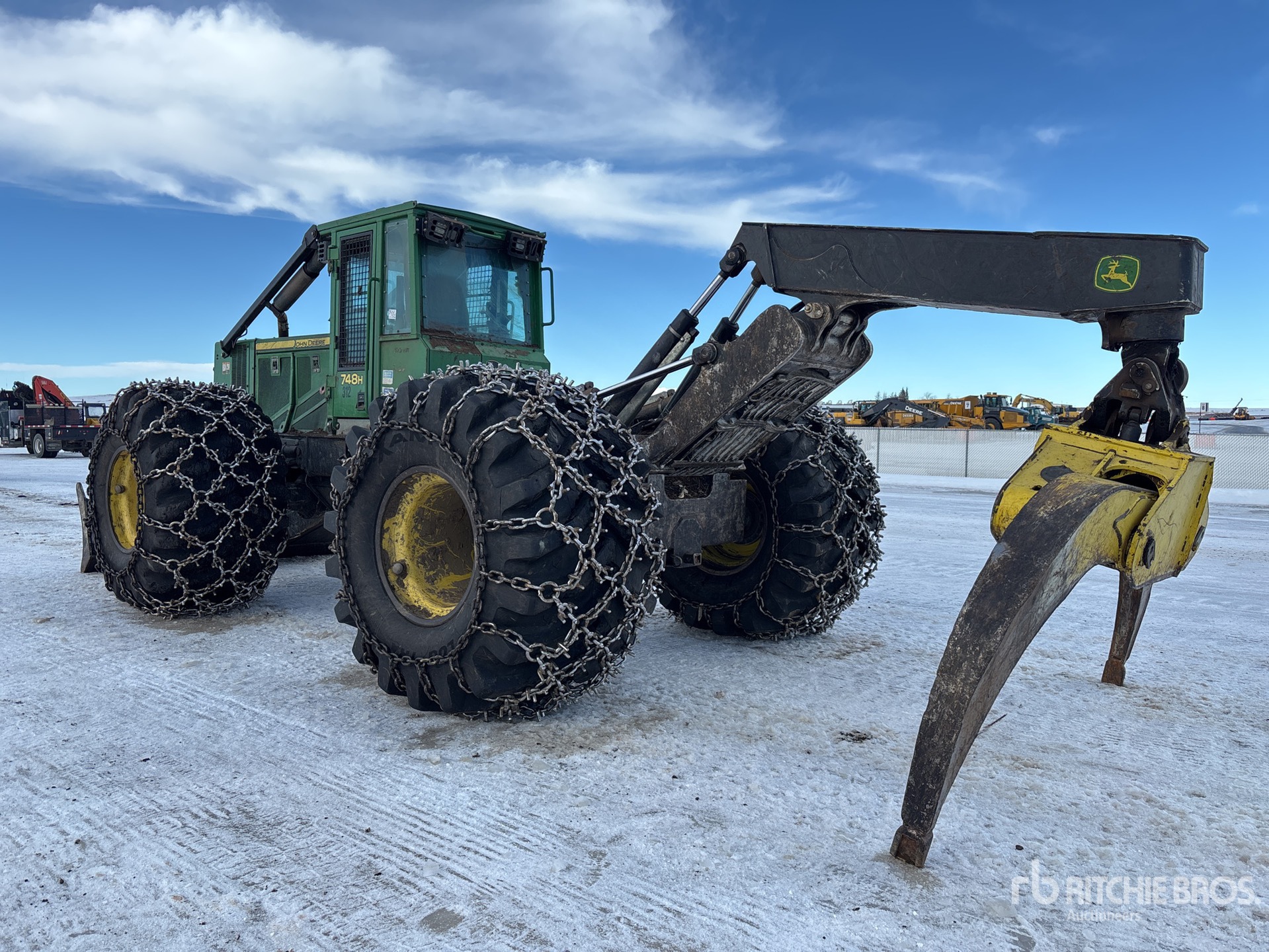 Air Conditioner, Joystick Steering, Air Ride Seat, Sweeps, Screens, 73/44.00x32 Tires w/2 Pairs of Chains