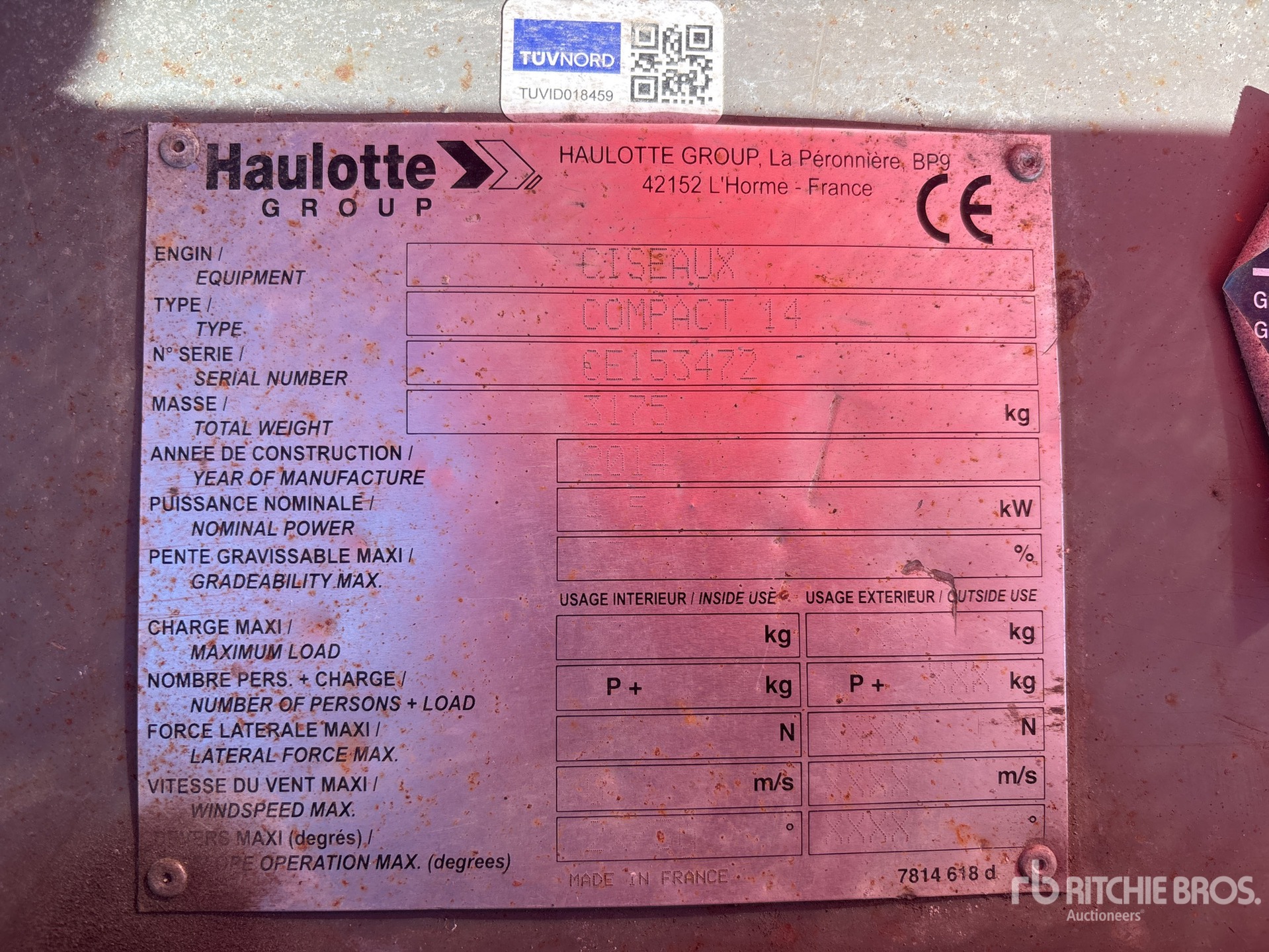 The detailed equipment information is limited in scope, and Ritchie Bros. Auctioneers has not inspected any aspects or components of the equipment other than those expressly set forth herein. Unless expressly stated, we make no representations or warranties, express or implied, concerning the equipment or its components, including without limitation any representations or warranties concerning functionality, conformity or compliance with any safety standard or requirement of any applicable authority or regulatory body, fitness for any particular purpose, or merchantability. You are strongly advised to perform your own detailed inspection of the equipment prior to bidding.
