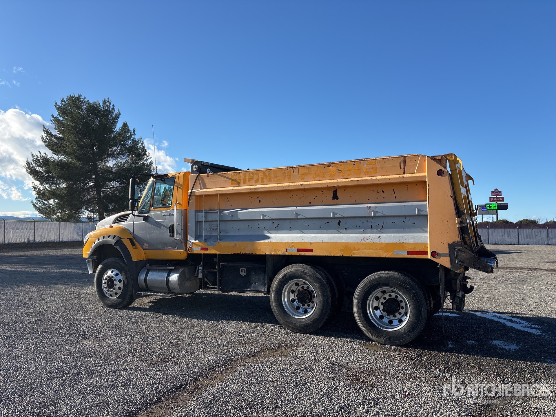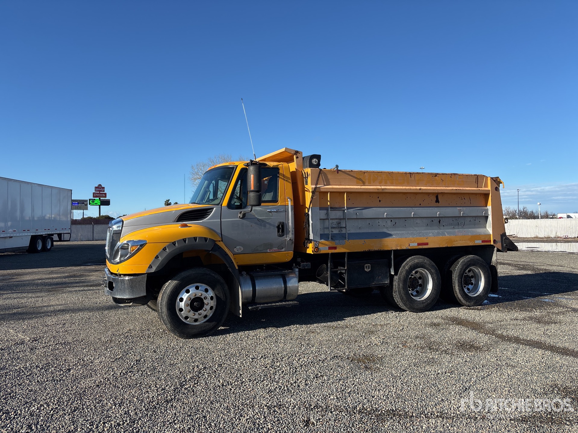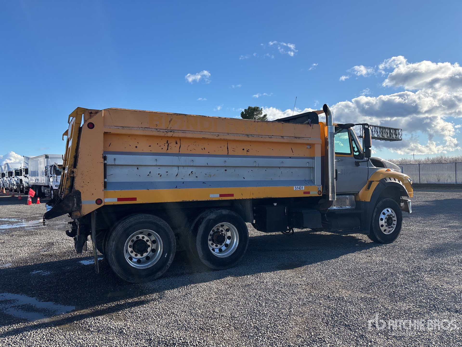 International A26 6 Cylinder 12.4 L Diesel Engine, 2013 US EPA Label, Eaton Fuller 13-Speed Manual Transmission, 14000 lb Front Axle, 40000 lb Rears, 54000 lb GVWR, Aluminum Wheels, 12R22.5 Front Tires, 11R22.5 Rear Tires, Hendrickson Haulmaax Suspension, 188 in Wheelbase, PTO, 14 ft 11 in Long x 4 ft 8 in High Steel Body, Tailgate Chute, Equipment-from-Biondi-Paving
