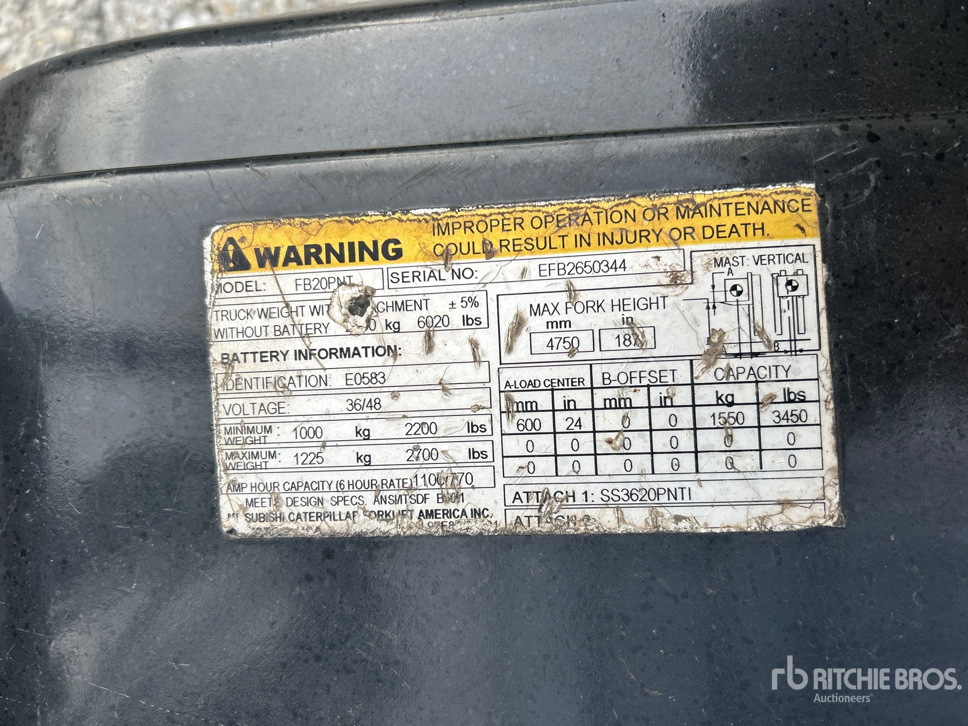 The detailed equipment information is limited in scope, and Ritchie Bros. Auctioneers has not inspected any aspects or components of the equipment other than those expressly set forth herein. Unless expressly stated, we make no representations or warranties, express or implied, concerning the equipment or its components, including without limitation any representations or warranties concerning functionality, conformity or compliance with any safety standard or requirement of any applicable authority or regulatory body, fitness for any particular purpose, or merchantability. You are strongly advised to perform your own detailed inspection of the equipment prior to bidding.