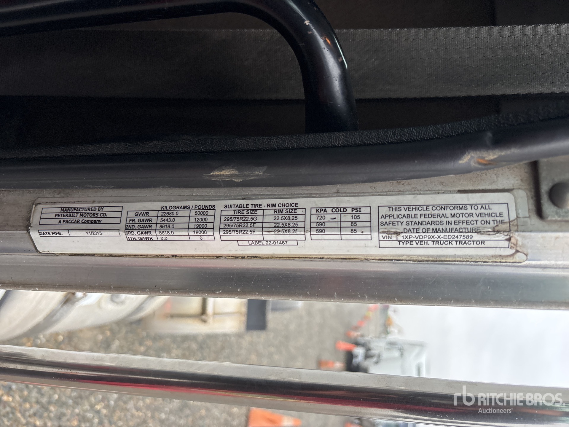 Located in Lane 11 Spot 6, Paccar MX-13 455 hp Engine, 2013 US EPA Label, Eaton Fuller 10-Speed Manual Transmission, 12000 lb Front Axle, 38000 lb Rears, 50000 lb GVWR, Air Suspension, Aluminum Wheels, 295/75R22.5, Air Sliding 5th Wheel