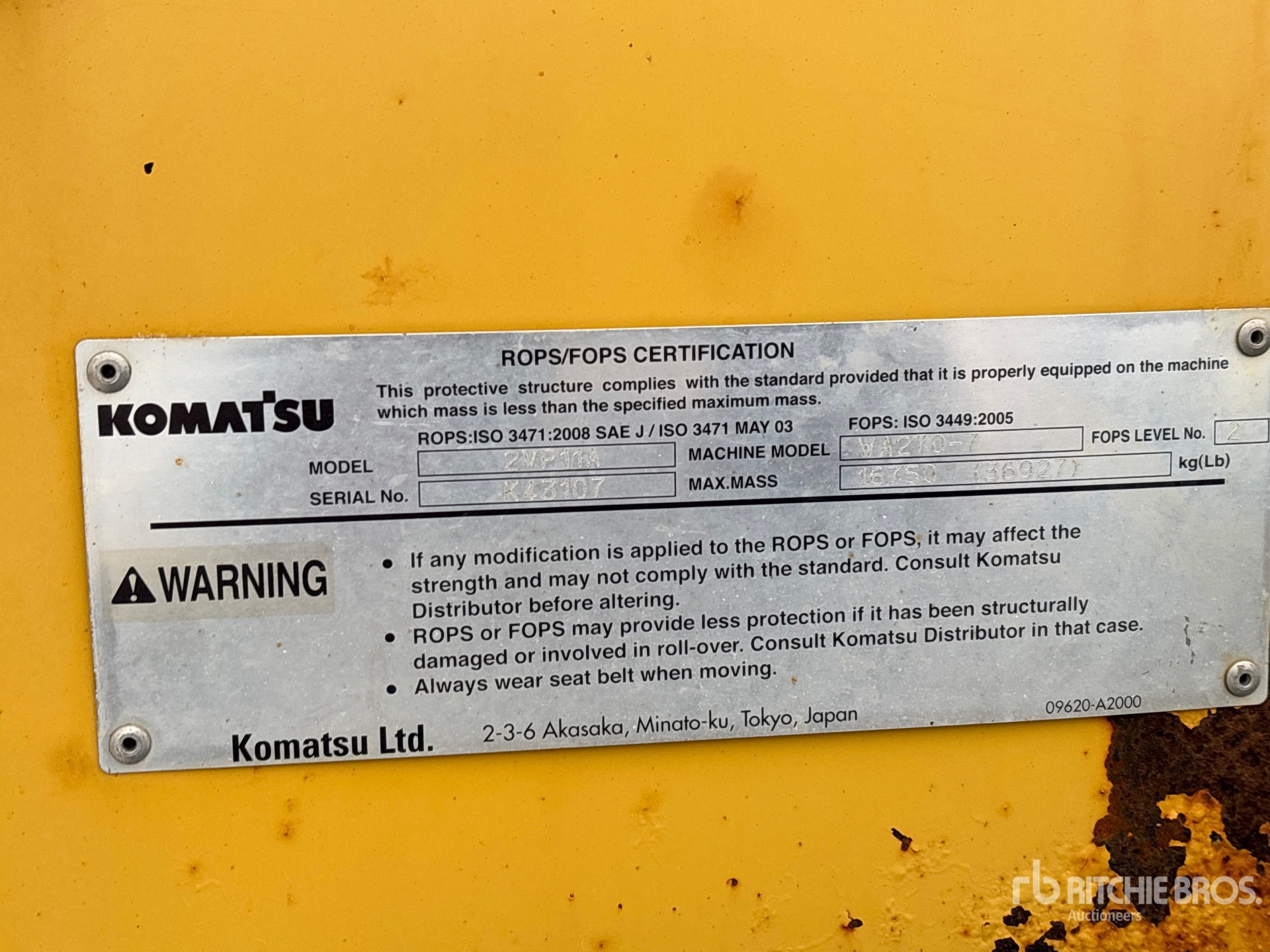 The detailed equipment information is limited in scope, and Ritchie Bros. Auctioneers has not inspected any aspects or components of the equipment other than those expressly set forth herein. Unless expressly stated, we make no representations or warranties, express or implied, concerning the equipment or its components, including without limitation any representations or warranties concerning functionality, conformity or compliance with any safety standard or requirement of any applicable authority or regulatory body, fitness for any particular purpose, or merchantability. You are strongly advised to perform your own detailed inspection of the equipment prior to bidding.