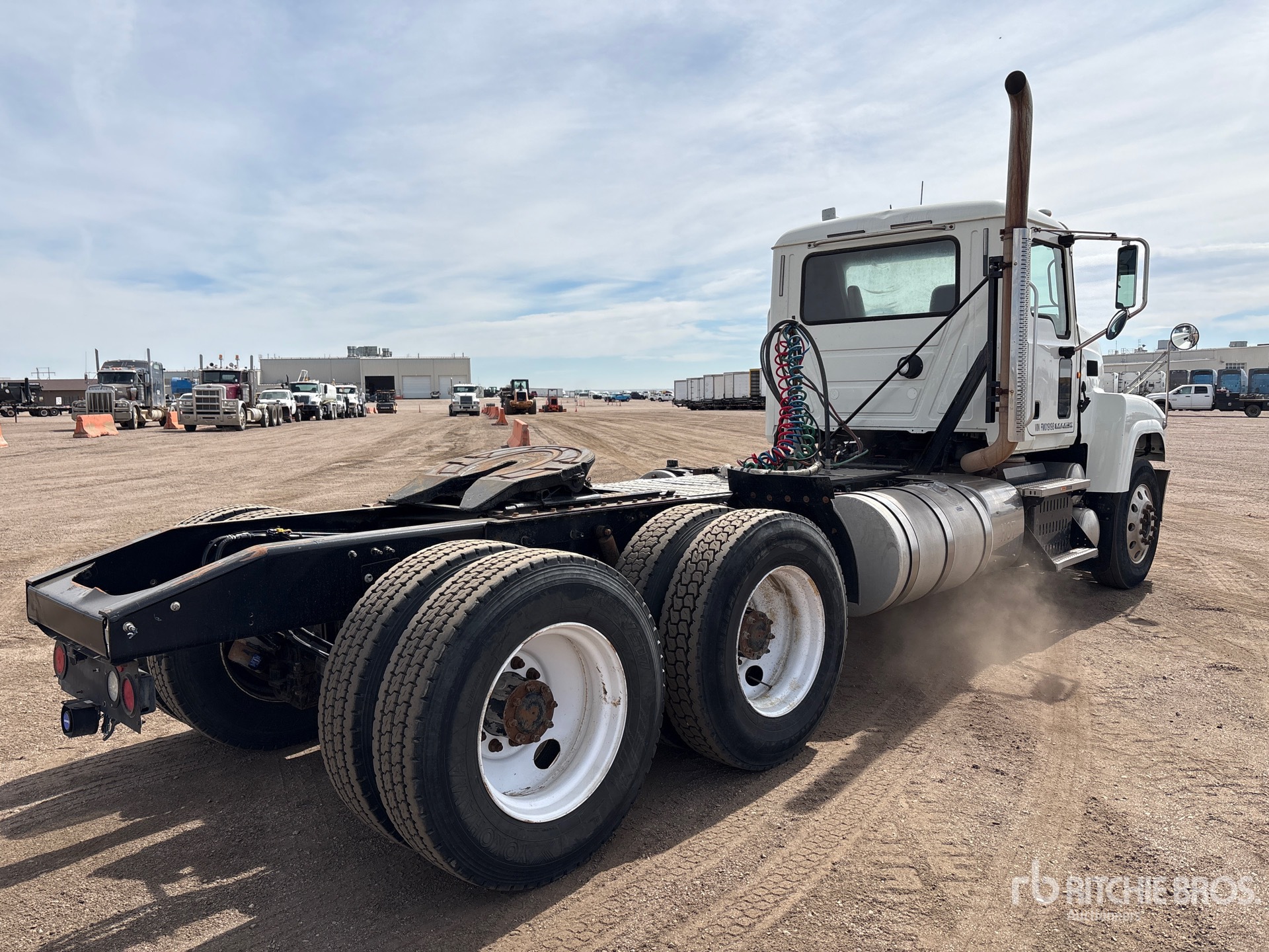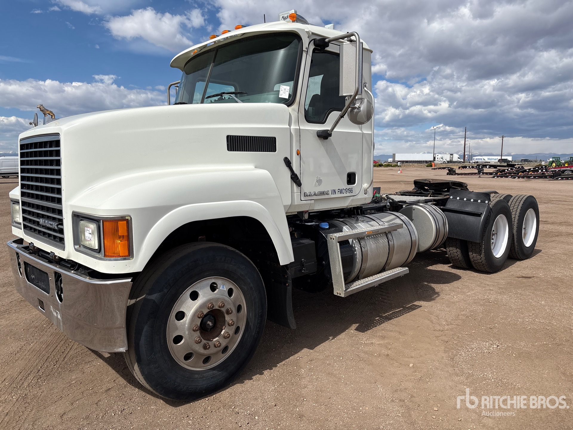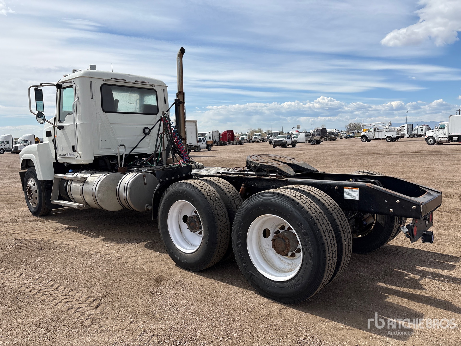 Located in Lane 10, Mack MP8 Engine, 2015 US EPA Label, Mack Maxitorque T318 18-Speed Manual Transmission Engine Brake, 224 in Wheelbase, Camelback, Aluminum Front Wheels, 11R24.5, Wet Kit, Air Sliding 5th Wheel, Dual Fuel Tanks