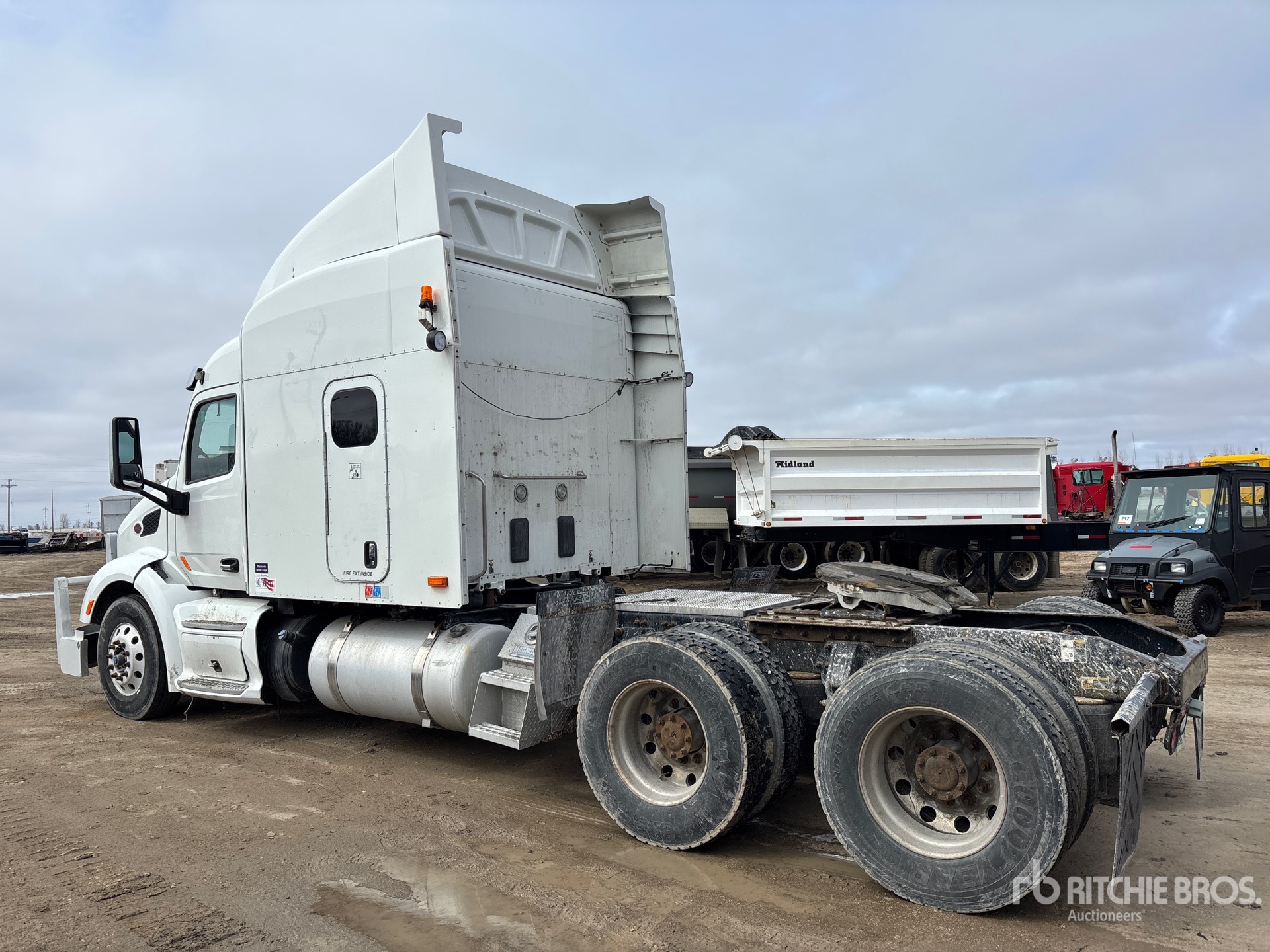 Paccar MX-13 Engine, Engine Coolant Heater, 2015 US EPA Label, Automated Transmission, 12350 lb Front Axle, 40000 lb Rears, 52350 lb GVWR, Engine Brake, Differential Lock, 63 in High Rise Sleeper Cab, Bunk Beds, 240 in Wheelbase, Air Suspension, Aluminum Wheels, 11R22.5, Air Sliding 5th Wheel, Dual Fuel Tanks