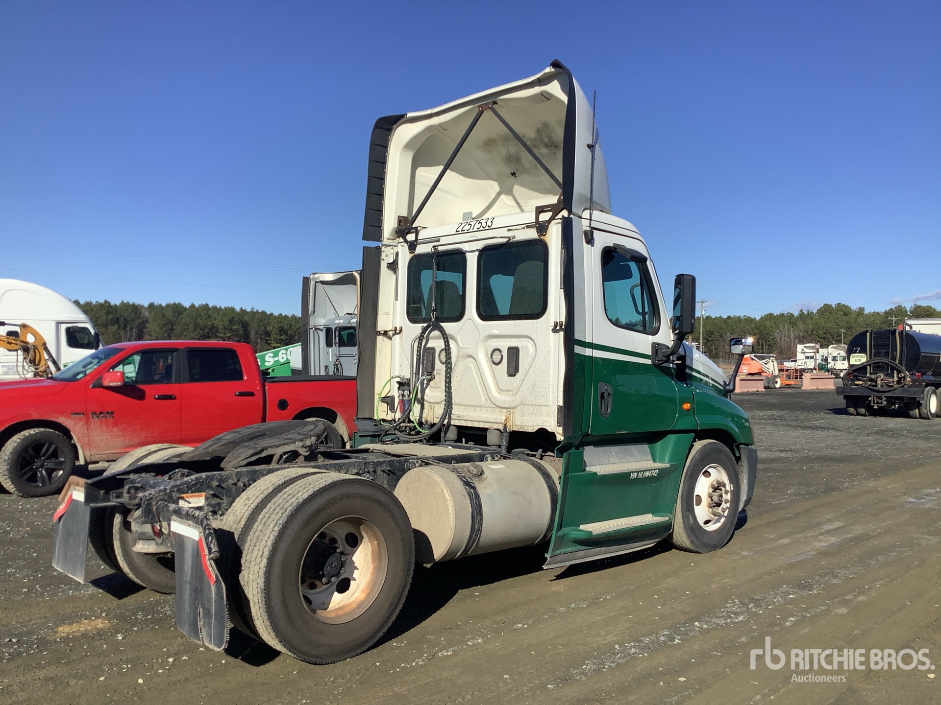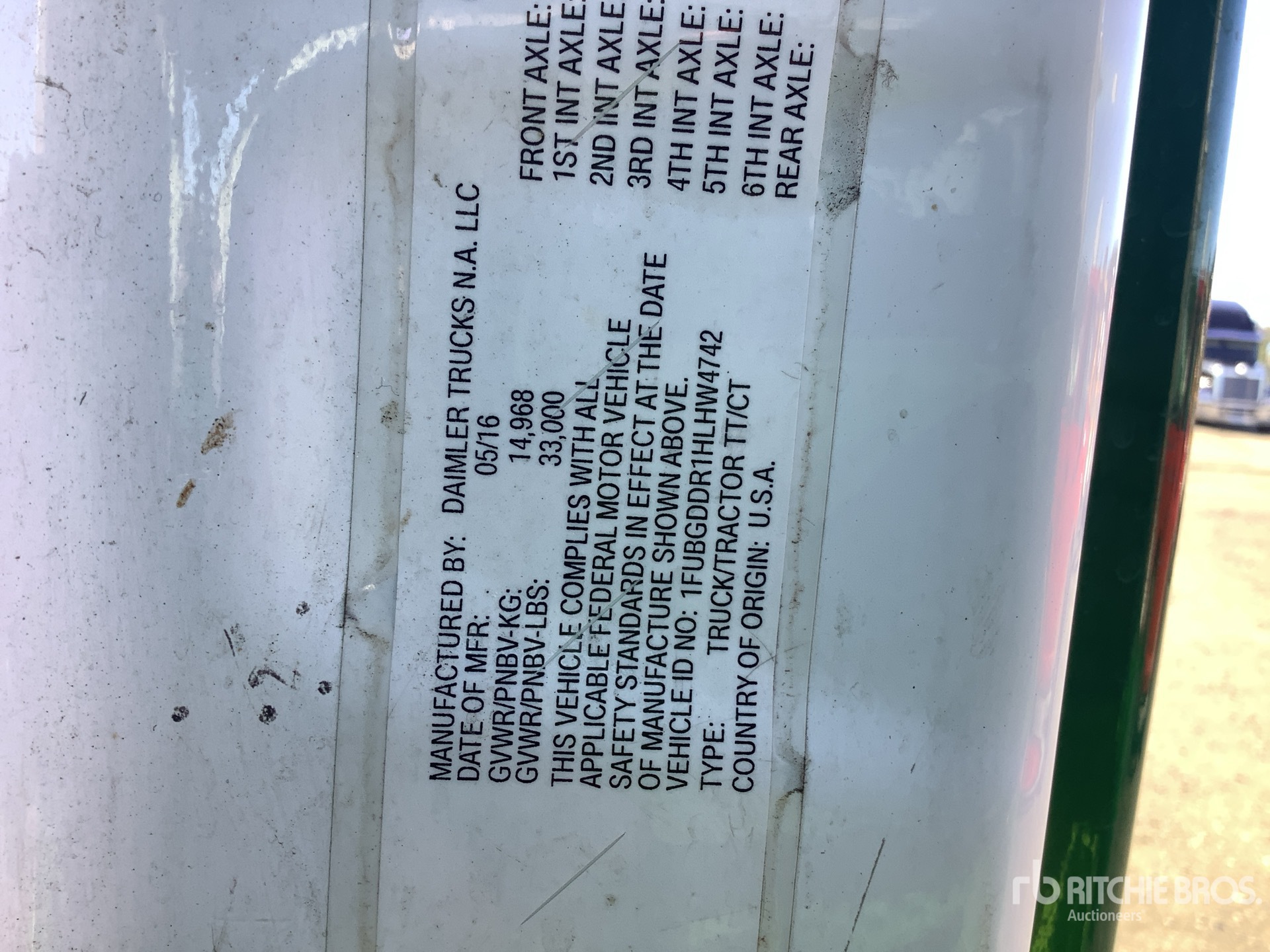 Detroit DD15 455 hp Engine, 2016 US EPA Label, 19897.5 Engine hrs, Eaton Fuller FRO-15210C 10-Speed Manual Transmission, 12000 lb Front Axle, 21000 lb Rears, 33000 lb GVWR, Engine Brake, 158 in Wheelbase, Air Suspension, 11R22.5 Front Tires, 11R22.5 Rear Tires, Dual Fuel Tanks