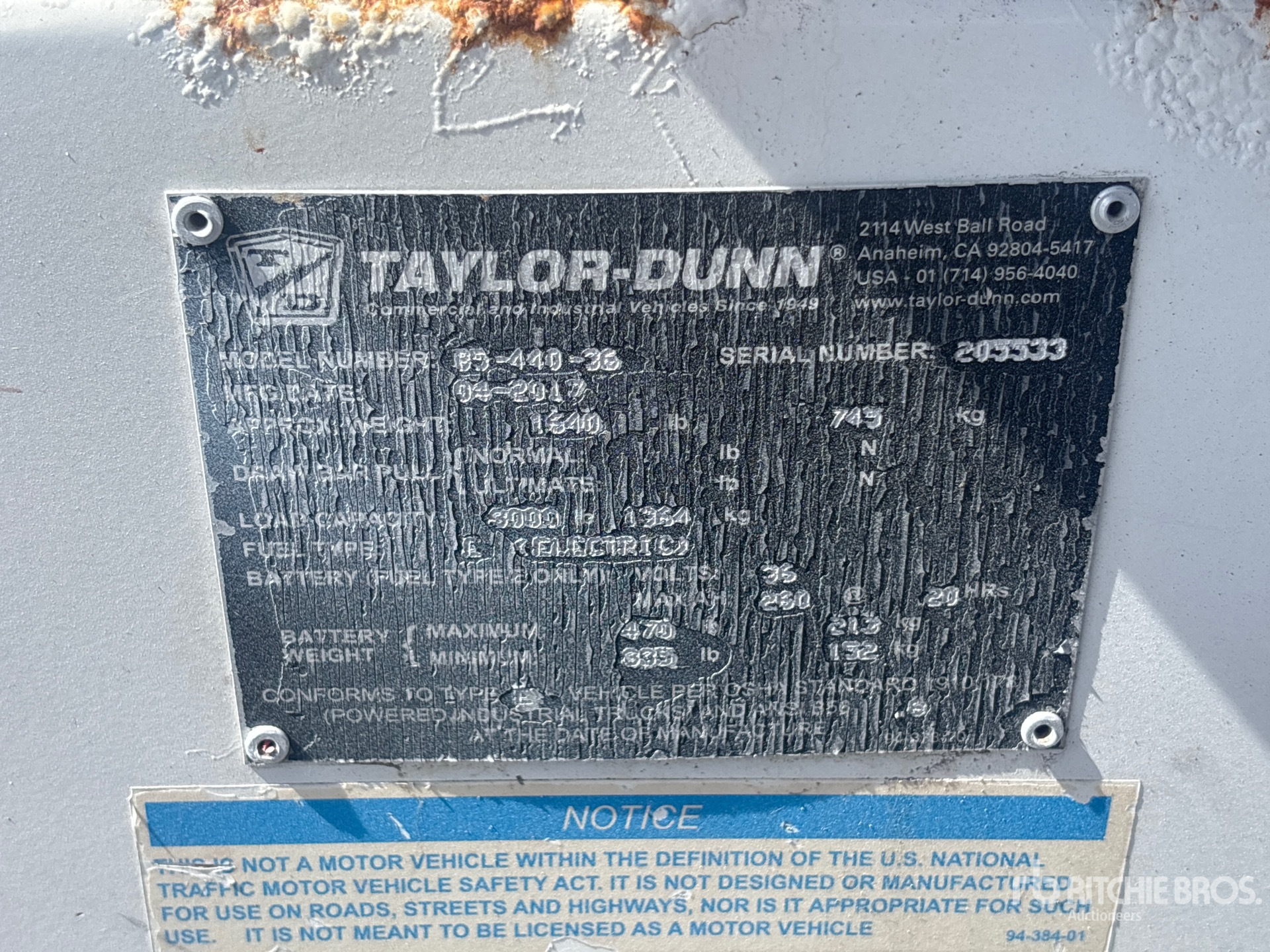 The detailed equipment information is limited in scope, and Ritchie Bros. Auctioneers has not inspected any aspects or components of the equipment other than those expressly set forth herein. Unless expressly stated, we make no representations or warranties, express or implied, concerning the equipment or its components, including without limitation any representations or warranties concerning functionality, conformity or compliance with any safety standard or requirement of any applicable authority or regulatory body, fitness for any particular purpose, or merchantability. You are strongly advised to perform your own detailed inspection of the equipment prior to bidding.