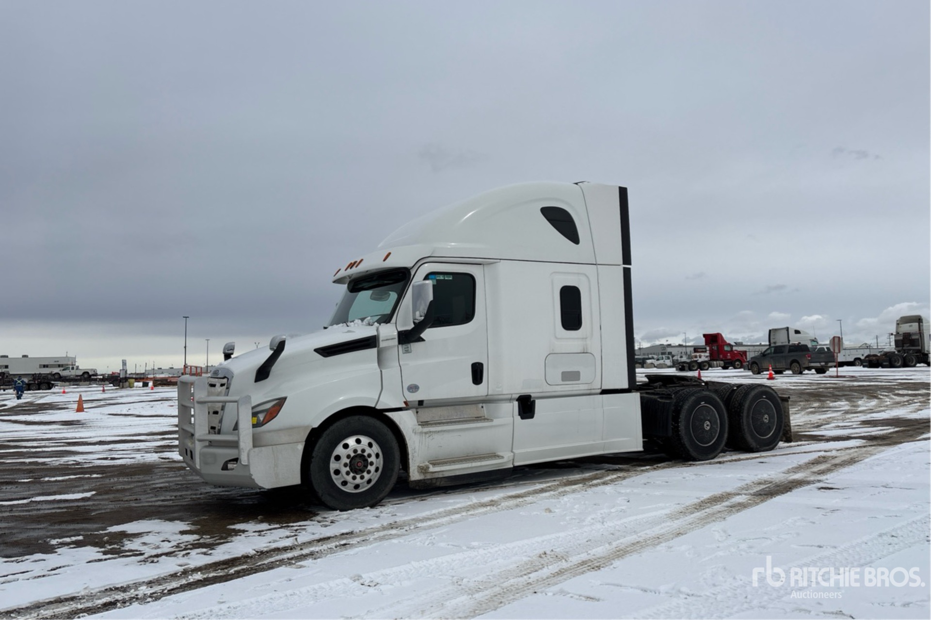 Located in Lane 34 Spot 58, Detroit DD15 505 hp Engine, 21277 Engine hrs, Detroit DT12-1650-OH1 12-Speed Automated Transmission, 13300 lb Front Axle, 40000 lb Rears, 53220 lb GVWR, Engine Brake, Differential Lock, 60 in High Rise Sleeper Cab, 232 in Wheelbase, Air Suspension, Aluminum Wheels, 11R22.5 Front Tires, 11R22.5 Rear Tires, Air Sliding 5th Wheel, Dual Fuel Tanks