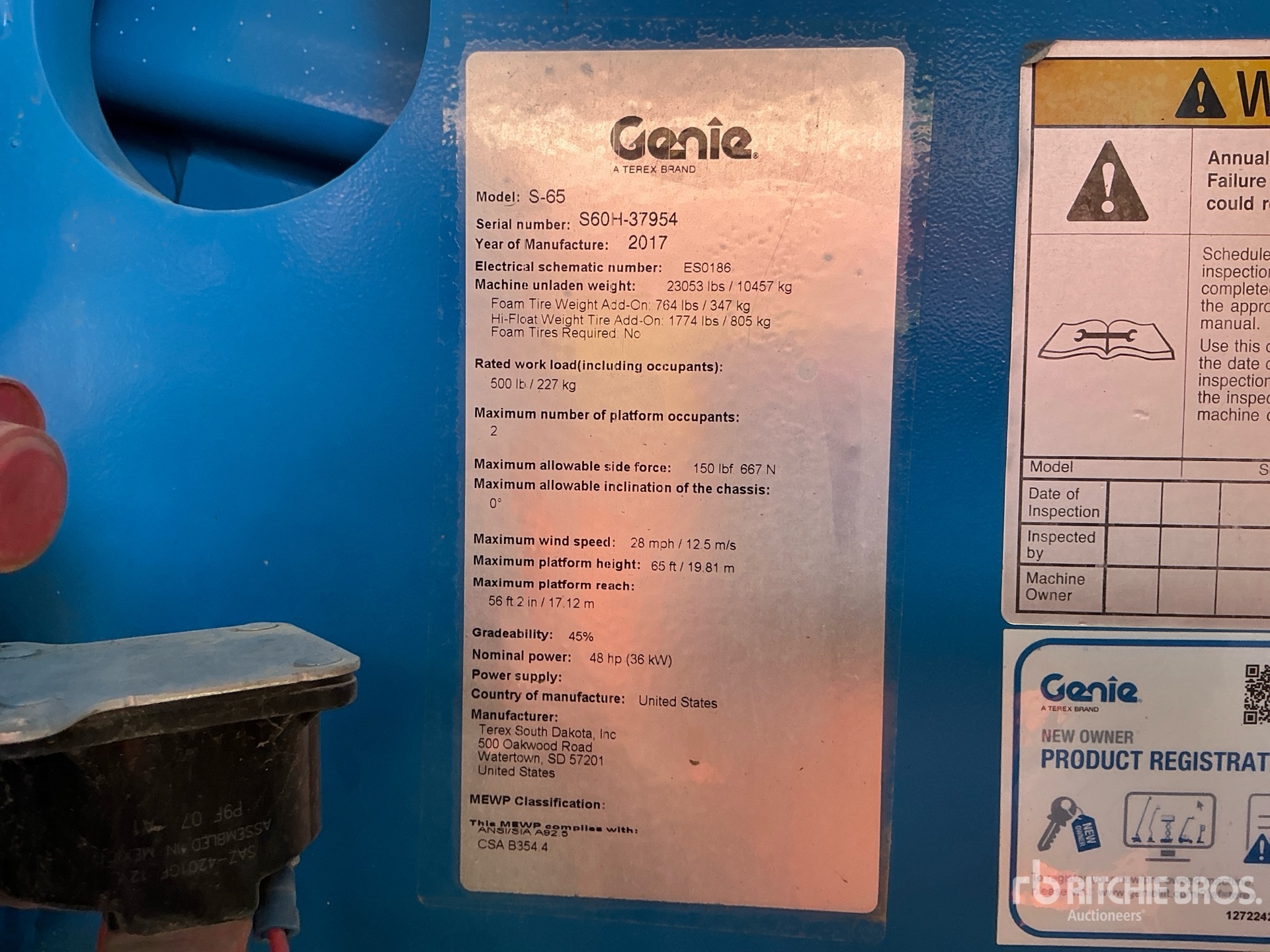 The detailed equipment information is limited in scope, and Ritchie Bros. Auctioneers has not inspected any aspects or components of the equipment other than those expressly set forth herein. Unless expressly stated, we make no representations or warranties, express or implied, concerning the equipment or its components, including without limitation any representations or warranties concerning functionality, conformity or compliance with any safety standard or requirement of any applicable authority or regulatory body, fitness for any particular purpose, or merchantability. You are strongly advised to perform your own detailed inspection of the equipment prior to bidding.