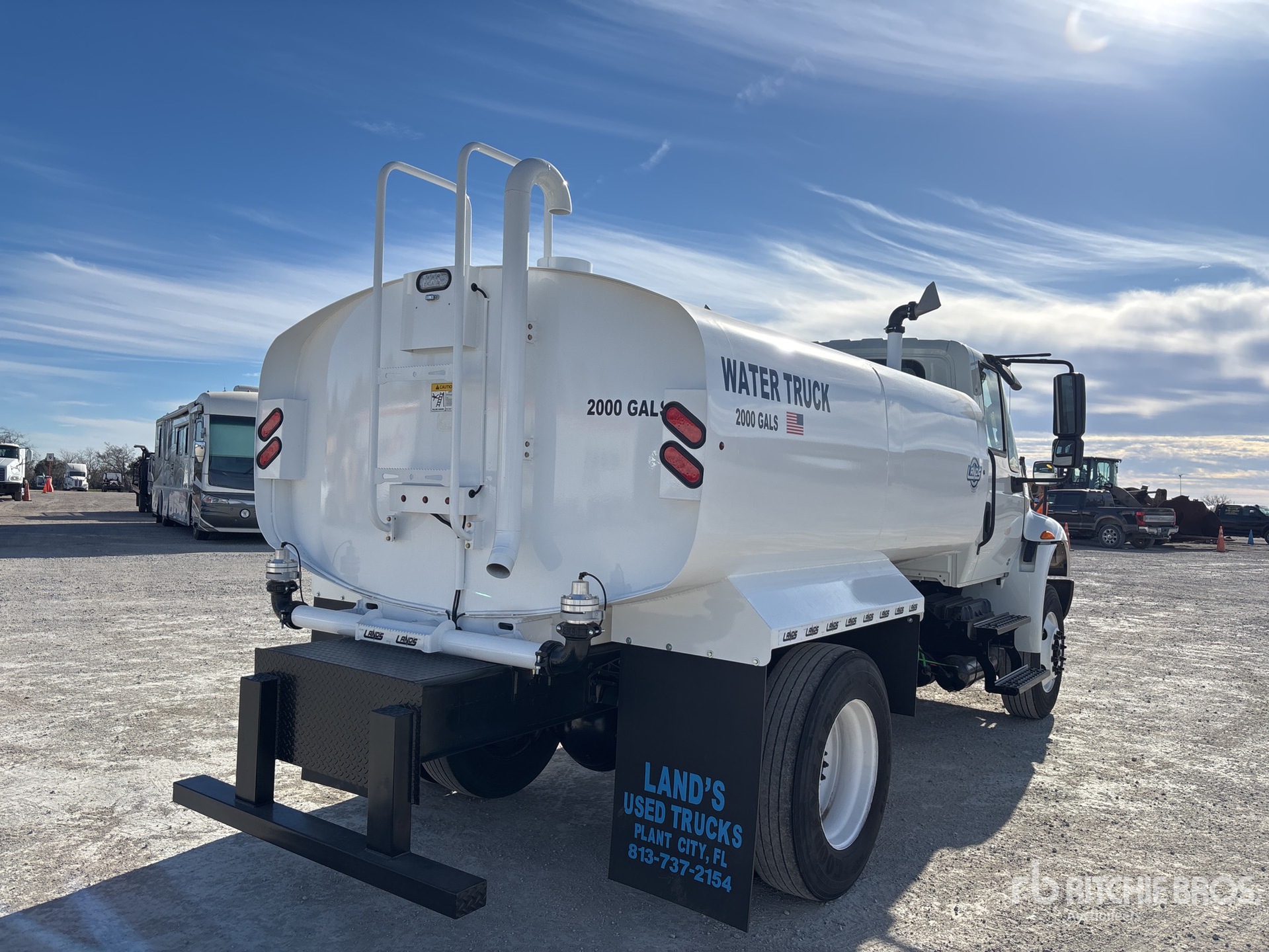 Located in Lane 10 Spot 9, Cummins 6.7 L Diesel 260 hp Engine, 2017 US EPA Label, Requires Diesel Exhaust Fluid, Automatic Transmission, 12000 lb Front Axle, 21000 lb Rears, 33000 lb GVWR, 295/75R22.5, Spring Suspension, 157 in Wheelbase, PTO, Land's 2000 gal Steel Tank, PTO Driven Pump, 5 ft 3 in, Spray Bar, Front Spray, Rear Spray, Side Spray