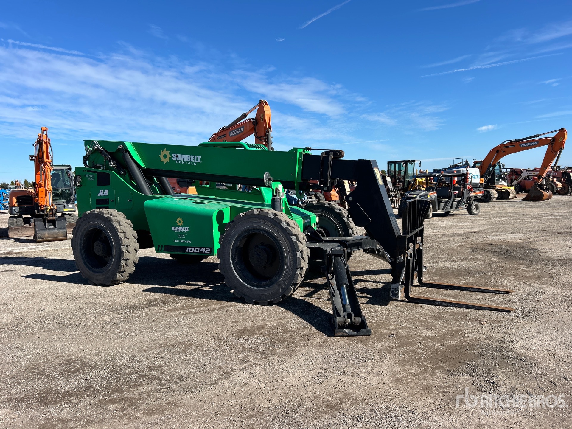 Open Operator Station, 42 ft Max Lift Height, 10000 lb Max Lift Capacity, 48 in Forks, Outriggers, Frame Leveling, Auxiliary Hydraulic Plumbing, 360/85-28/10.00 Tires