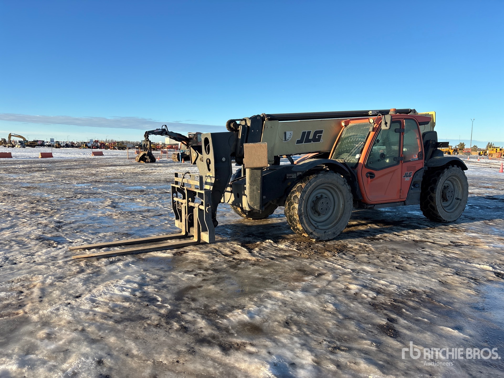 Enclosed Cab, Air Conditioner, Air Ride Seat, 55 ft Max Lift Height, 12000 lb Max Lift Capacity, 2017 US EPA Label, Requires Diesel Exhaust Fluid, Positive Air Shutoff, 72 in Forks, Tilt Carriage, Outriggers, Frame Leveling, Auxiliary Hydraulic Plumbing, 400/75-28 Tires