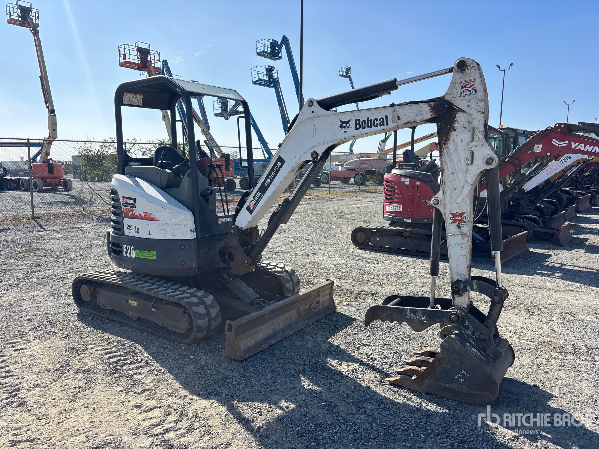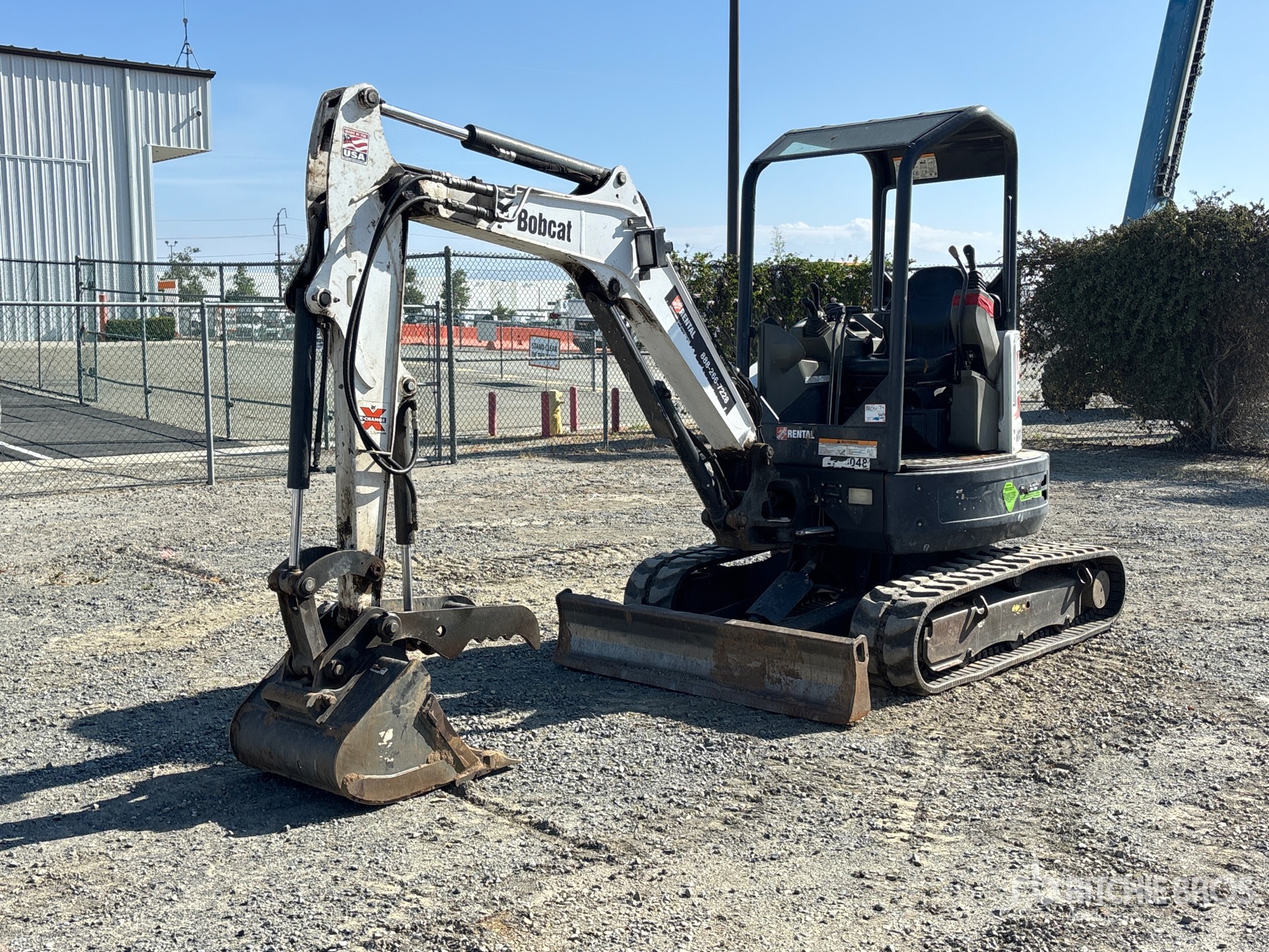 4 ft 7 in Stick, Backfill Blade, 12 in Rubber Tracks, Manual Quick Coupler, 24 in Digging Bucket, Hydraulic Thumb