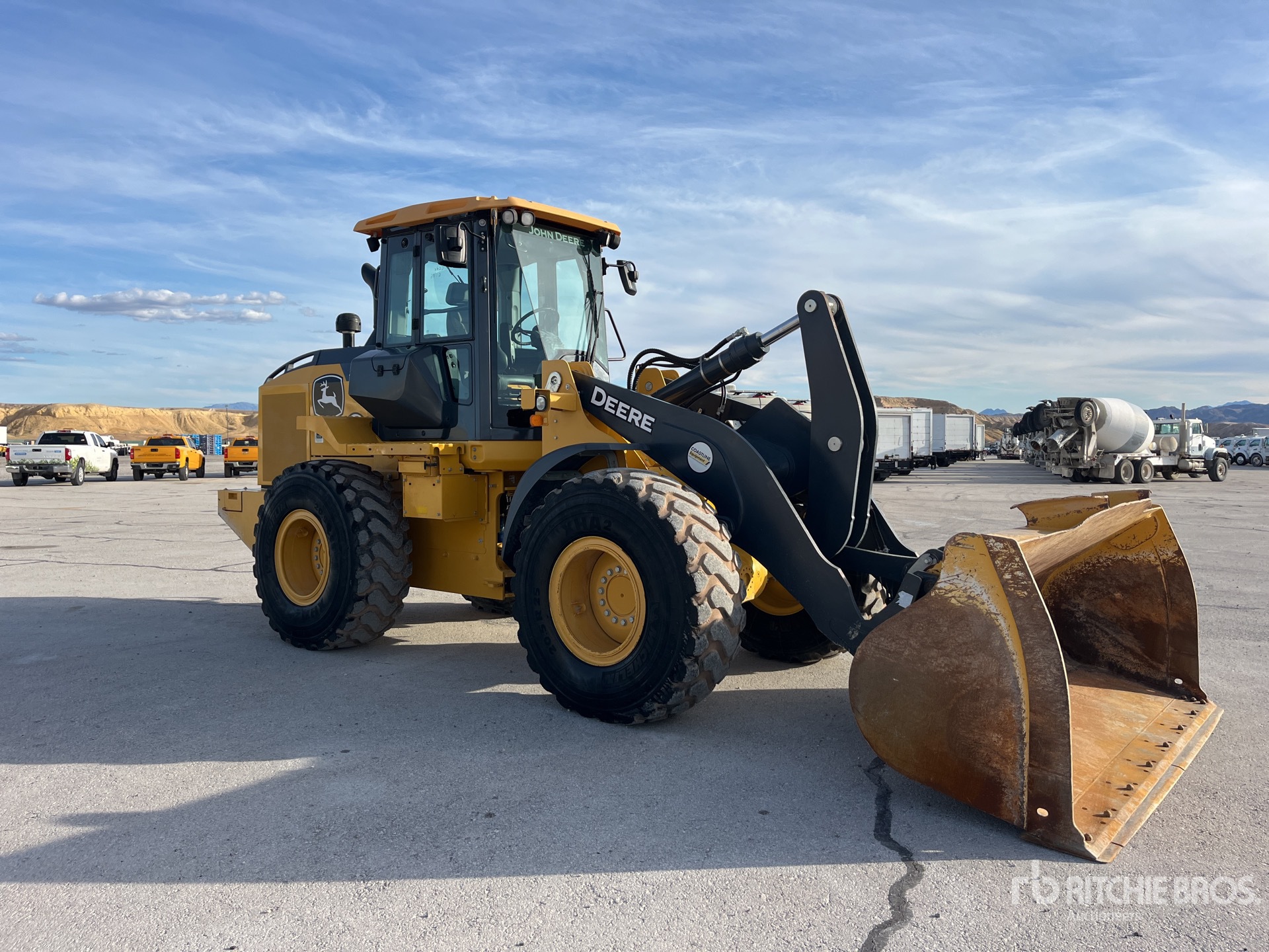 Enclosed Cab, Air Conditioner, Rear View Camera, Ride Control, Requires Diesel Exhaust Fluid, Hydraulic Coupler, 106 in Bucket, 20.5R25 Tires