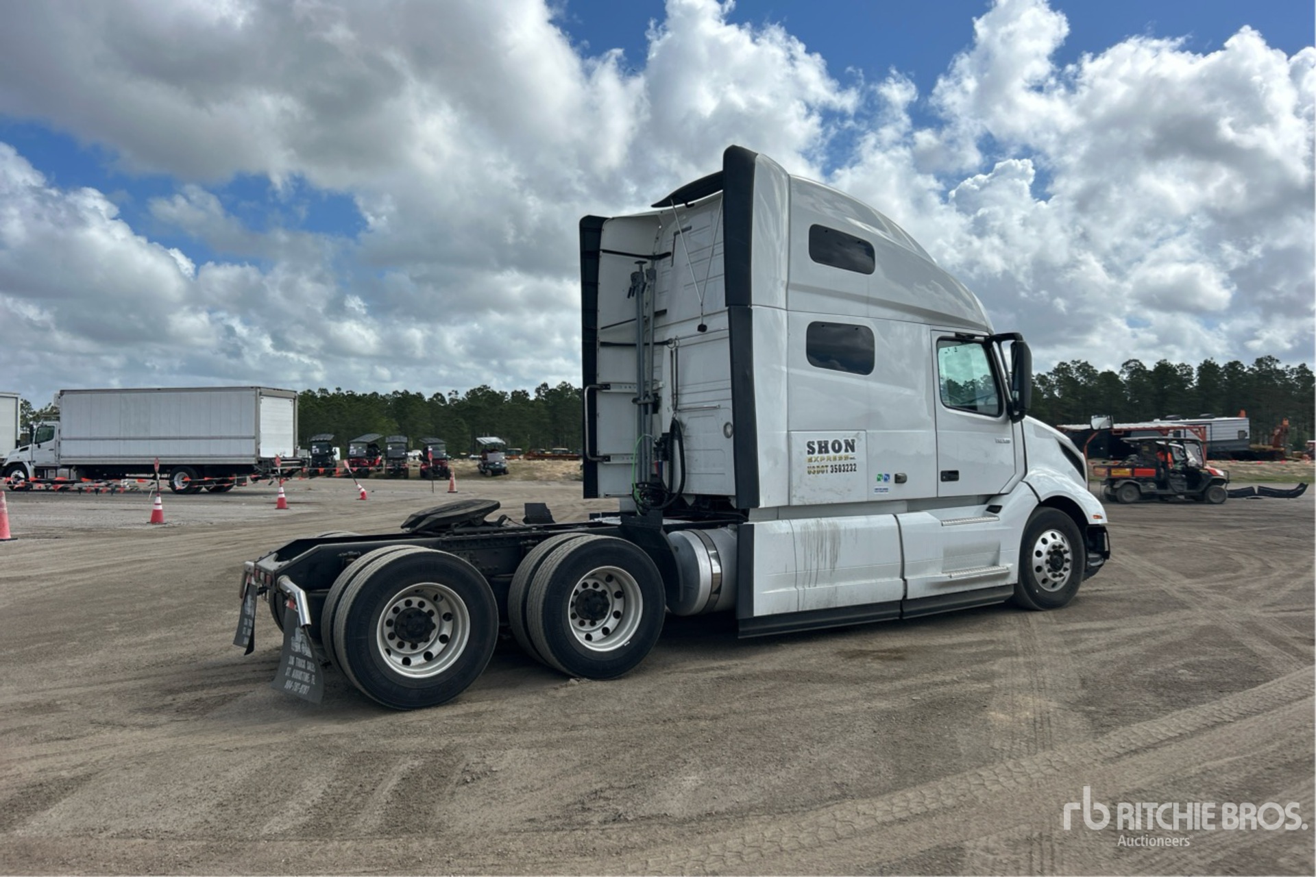 Volvo D13M 425 hp Engine, 2018 US EPA Label, 1317 Engine hrs, Volvo AT2612F 12-Speed Automated Transmission, 12350 lb Front Axle, 38000 lb Rears, 50350 lb GVWR, Engine Brake, 70 in High Rise Sleeper Cab, Bunk Beds, 223 in Wheelbase, Air Suspension, Aluminum Wheels, 295/75R22.5, Air Sliding 5th Wheel, Dual Fuel Tanks