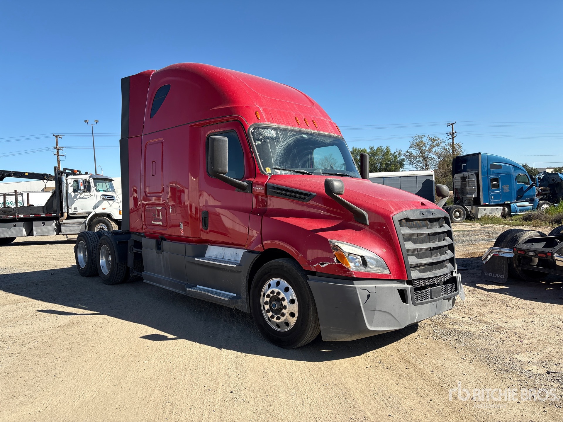 Detroit DD15 400 hp Engine, 2019 US EPA Label, 9599 Engine hrs, Detroit DT12-1750-DH1 12-Speed Automated Transmission, 12000 lb Front Axle, 40000 lb Rears, 52000 lb GVWR, Engine Brake, 72 in High Rise Sleeper Cab, 223 in Wheelbase, Air Suspension, Aluminum Wheels, 275/80R22.5 Front Tires, 295/75R22.5 Rear Tires, Air Sliding 5th Wheel, Dual Fuel Tanks