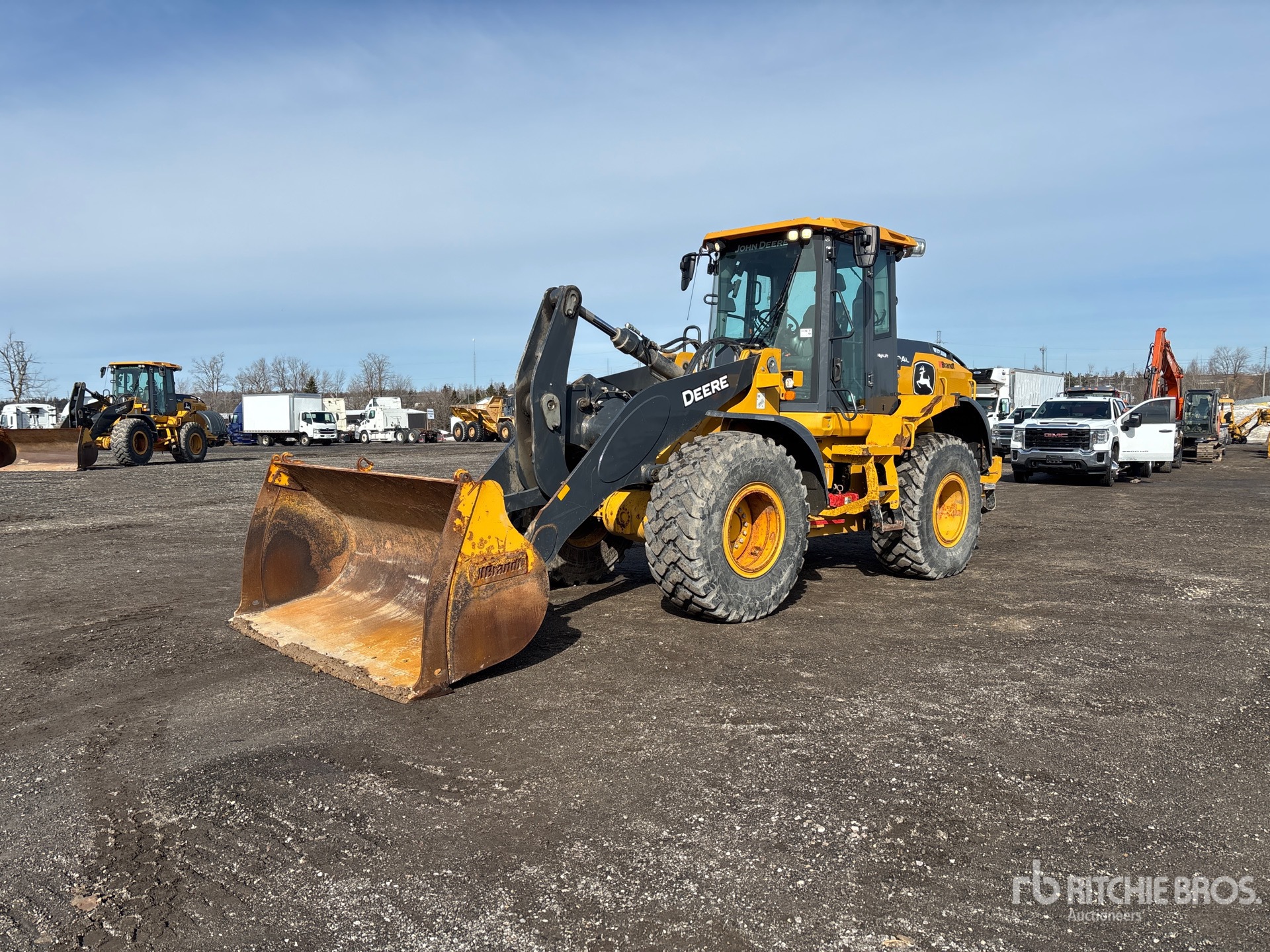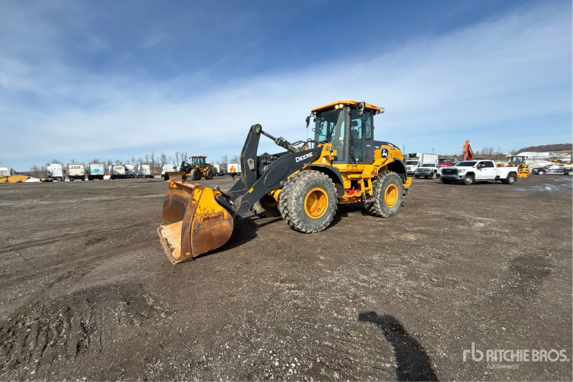 Enclosed Cab, Air Conditioner, Rear View Camera, Air Ride Seat, Ride Control, Requires Diesel Exhaust Fluid, Auxiliary Hydraulics, Hydraulic Coupler, 99 in Bucket, 20.5R25 Tires
