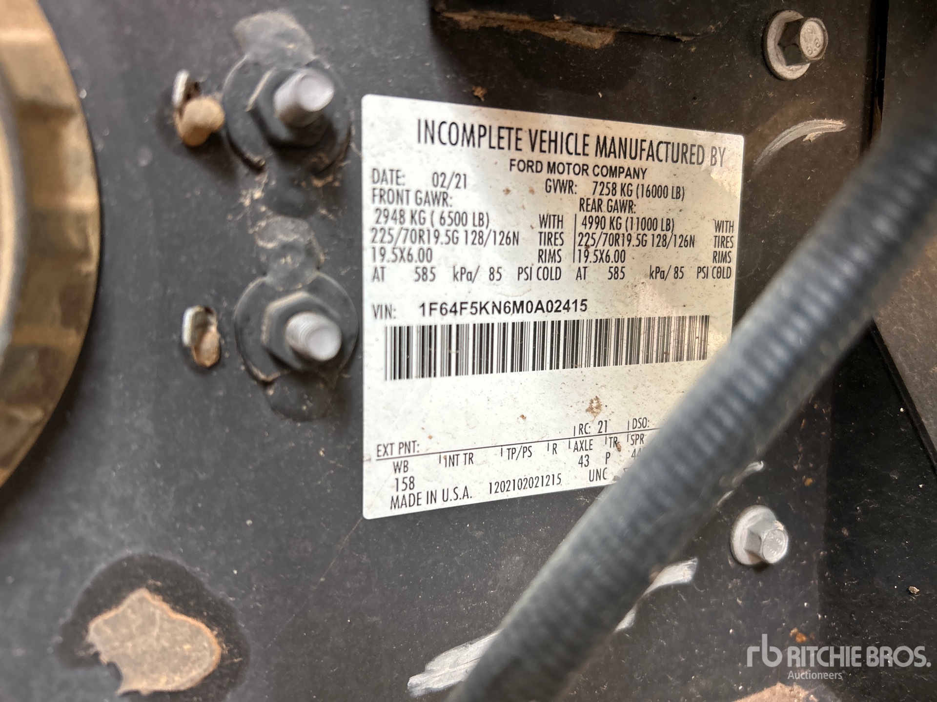 Ford V8 7.3 L Gasoline Engine, 2021 US EPA Label, Automatic Transmission, 6500 lb Front Axle, 11000 lb Rears, 16000 lb GVWR, 245/70R19.5 Front Tires, 225/70R19.5 Rear Tires, Spring Suspension, 14 ft x 96 in Wide x 85 in High Body, Curbside Door