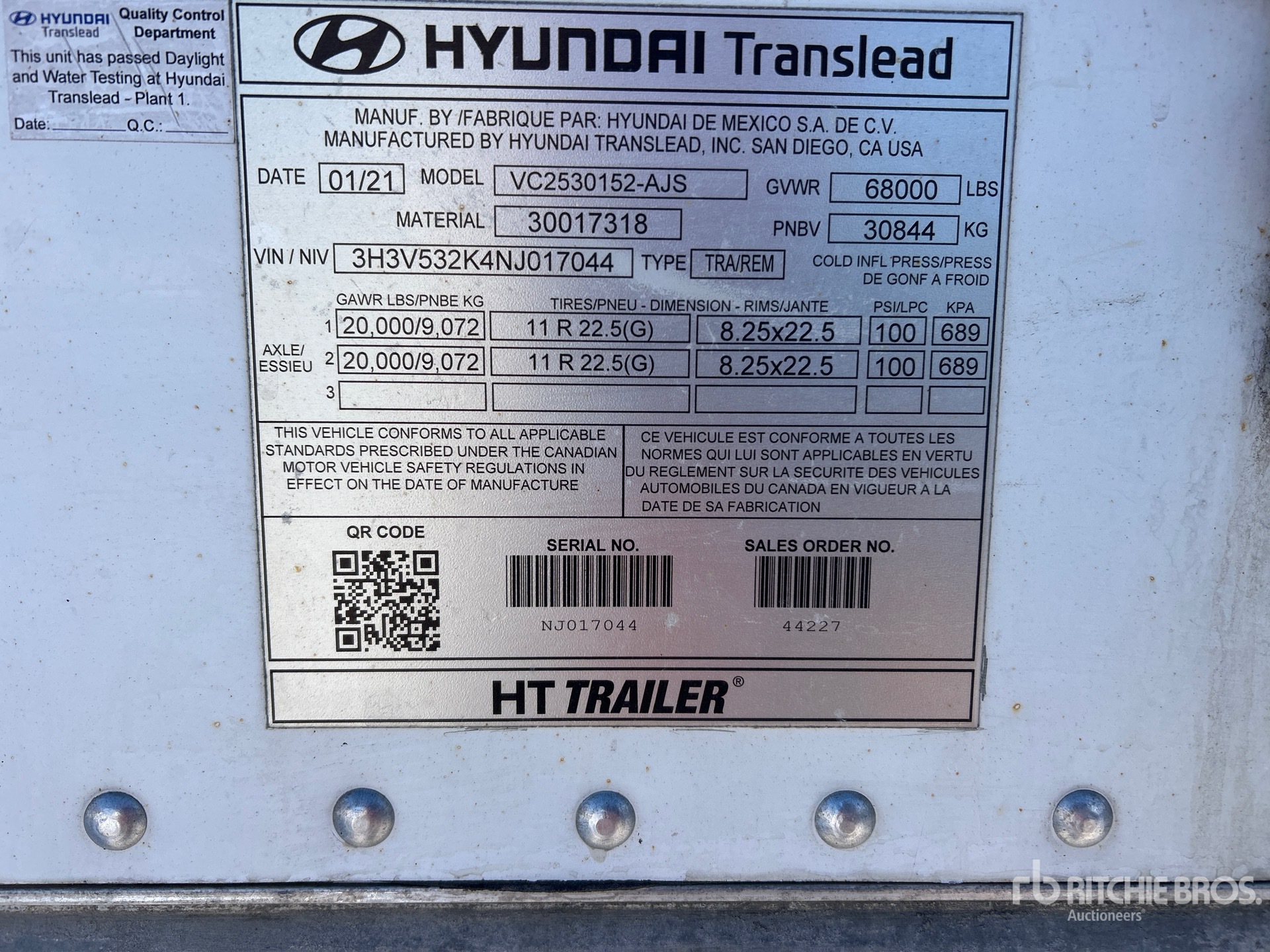 The detailed equipment information is limited in scope, and Ritchie Bros. Auctioneers has not inspected any aspects or components of the equipment other than those expressly set forth herein. Unless expressly stated, we make no representations or warranties, express or implied, concerning the equipment or its components, including without limitation any representations or warranties concerning functionality, conformity or compliance with any safety standard or requirement of any applicable authority or regulatory body, fitness for any particular purpose, or merchantability. You are strongly advised to perform your own detailed inspection of the equipment prior to bidding.