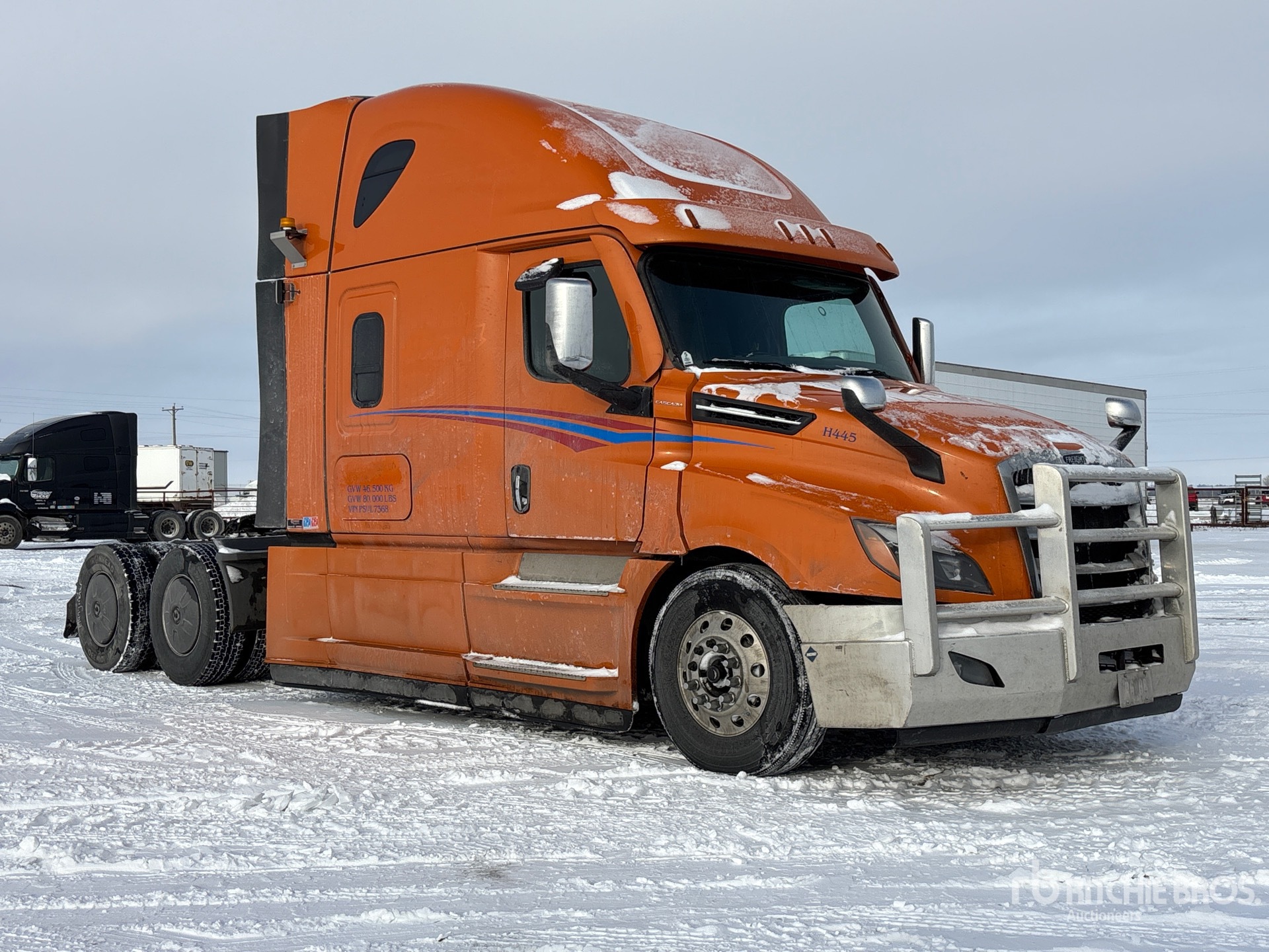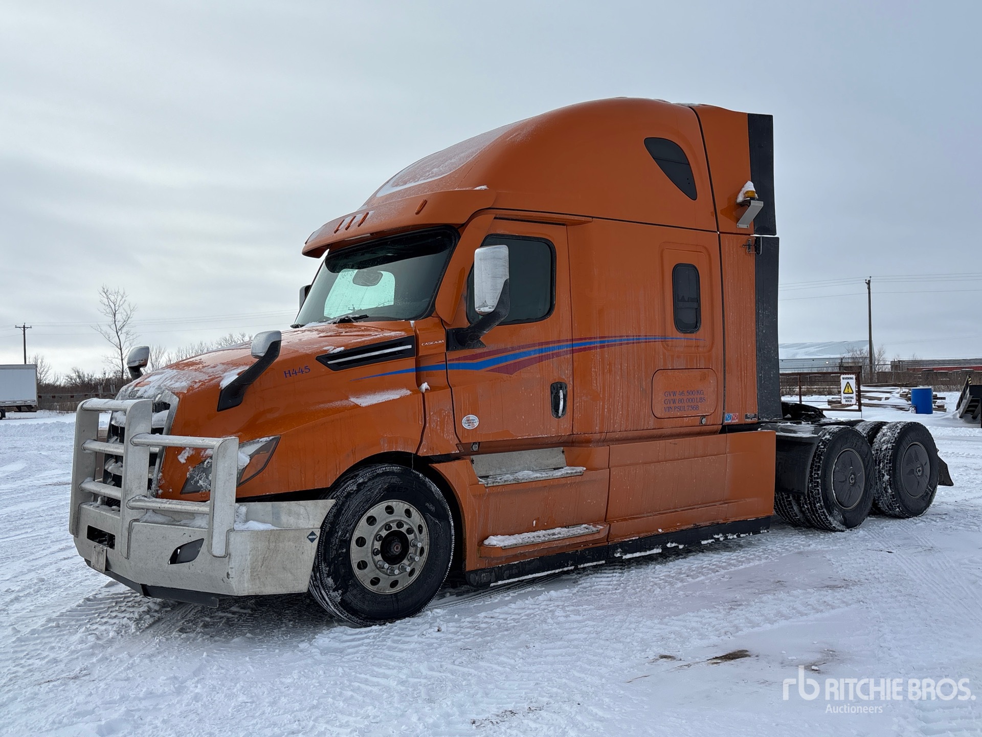 Detroit DD15 505 hp Engine, 9022 Engine hrs, Detroit DT12-1750-OH 12-Speed Automated Transmission, 13220 lb Front Axle, 40000 lb Rears, 53220 lb GVWR, Engine Brake, Double Differential Locks, 60 in High Rise Sleeper Cab, Bunk Beds, 233 in Wheelbase, Air Suspension, Aluminum Wheels, 11R22.5, Air Sliding 5th Wheel, Dual Fuel Tanks