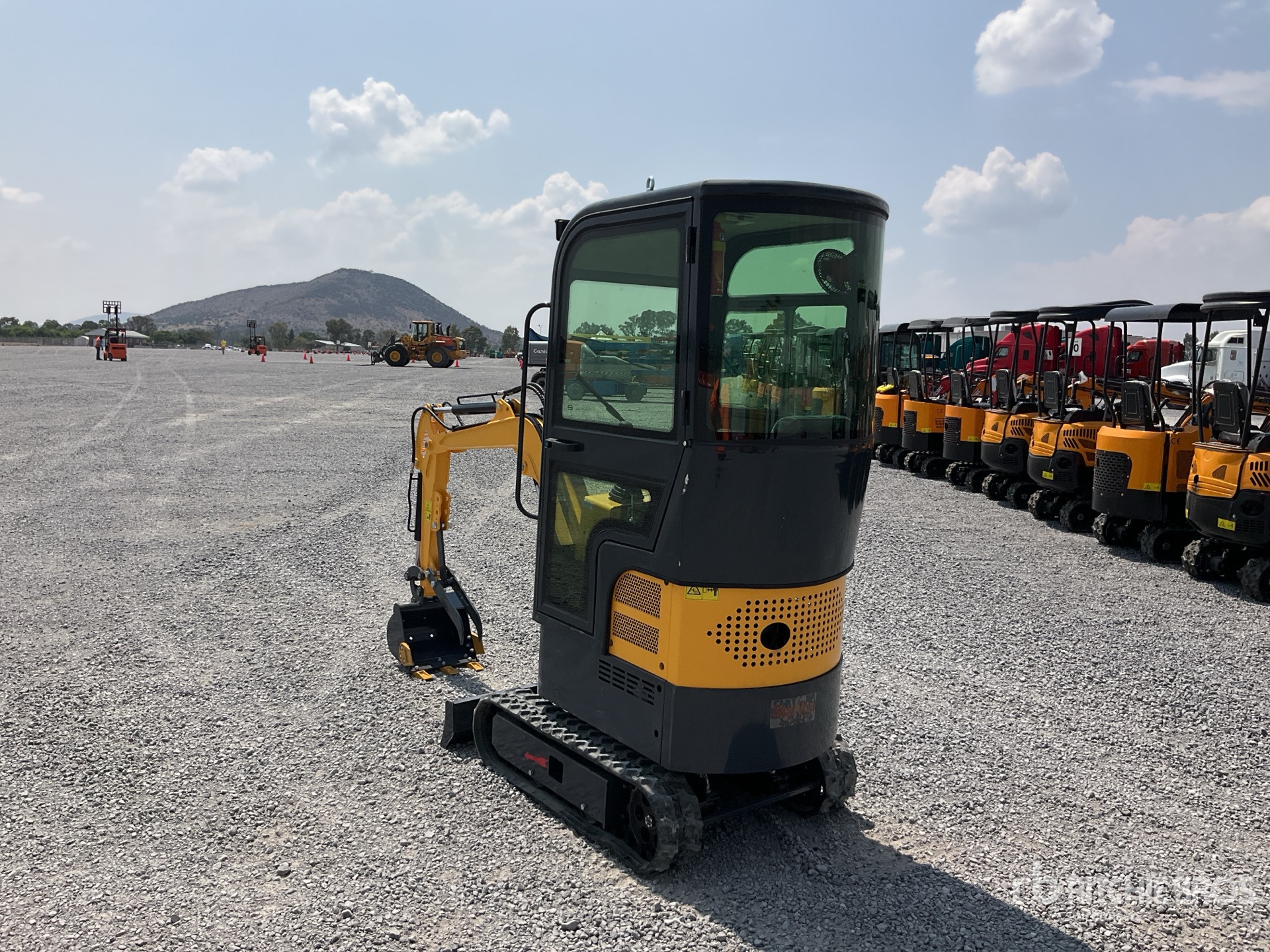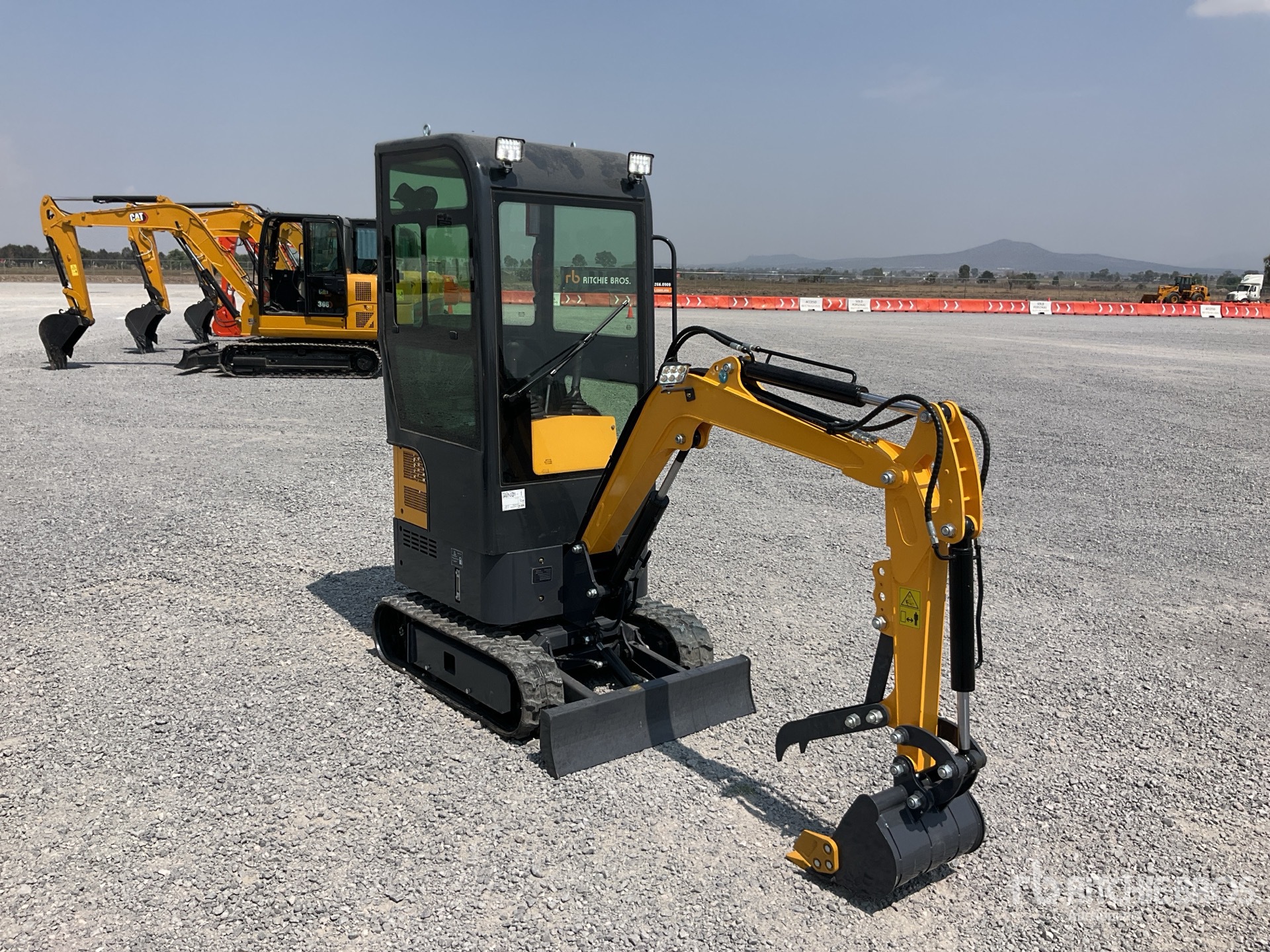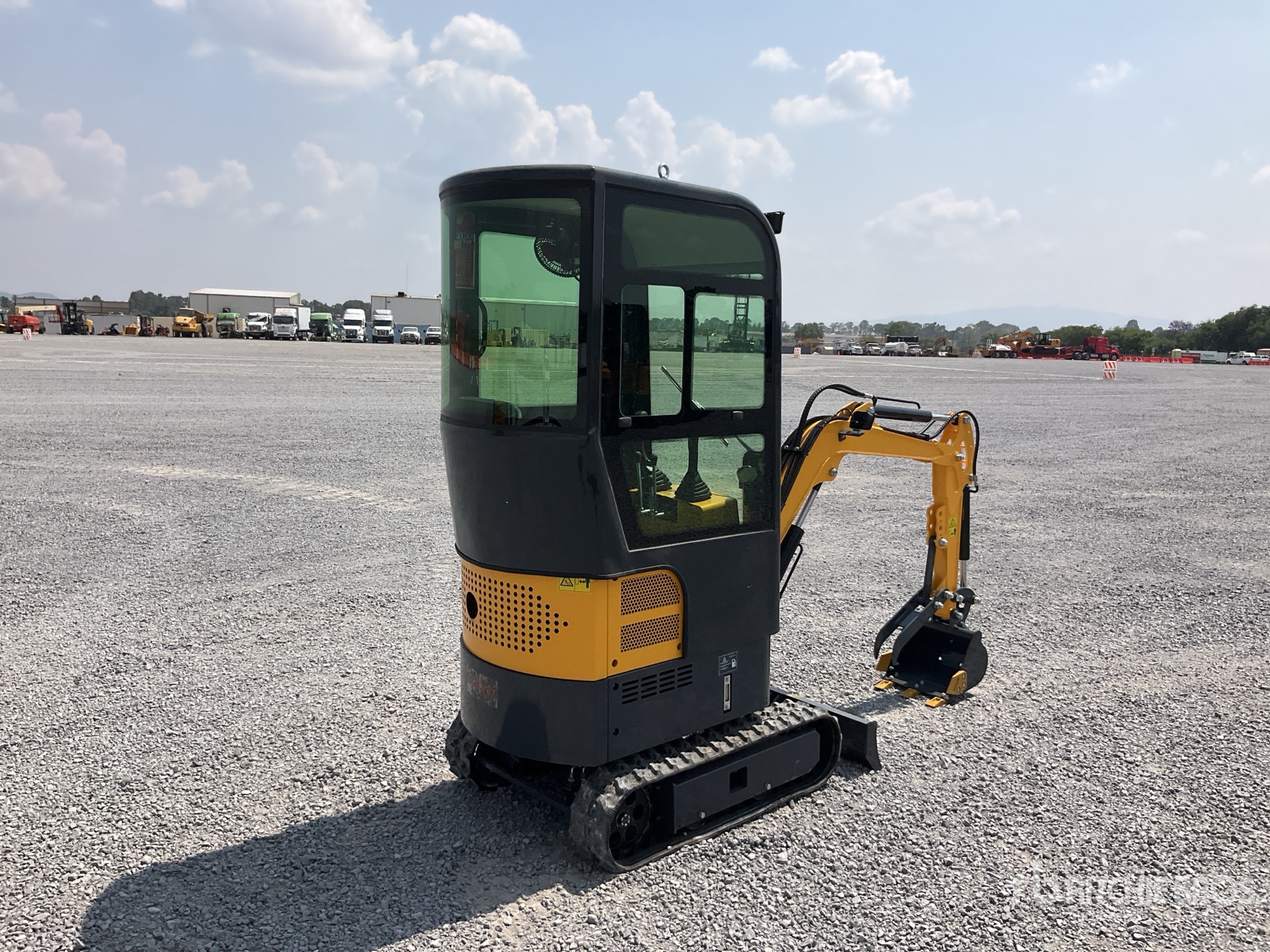 Located in Lane 17 Spot 104, Enclosed Cab, 2 ft 7 in Stick, Auxiliary Hydraulic Plumbing, Backfill Blade, 7 in Rubber Tracks, 15 in Digging Bucket, Thumb Bracket, / Cabina, Brazo 2 ft 7 in, Sistema Auxiliar Hidraulico, Cuchilla, Orugas de Hule 7 in, Cucharon 15 in, Pulgar Manual