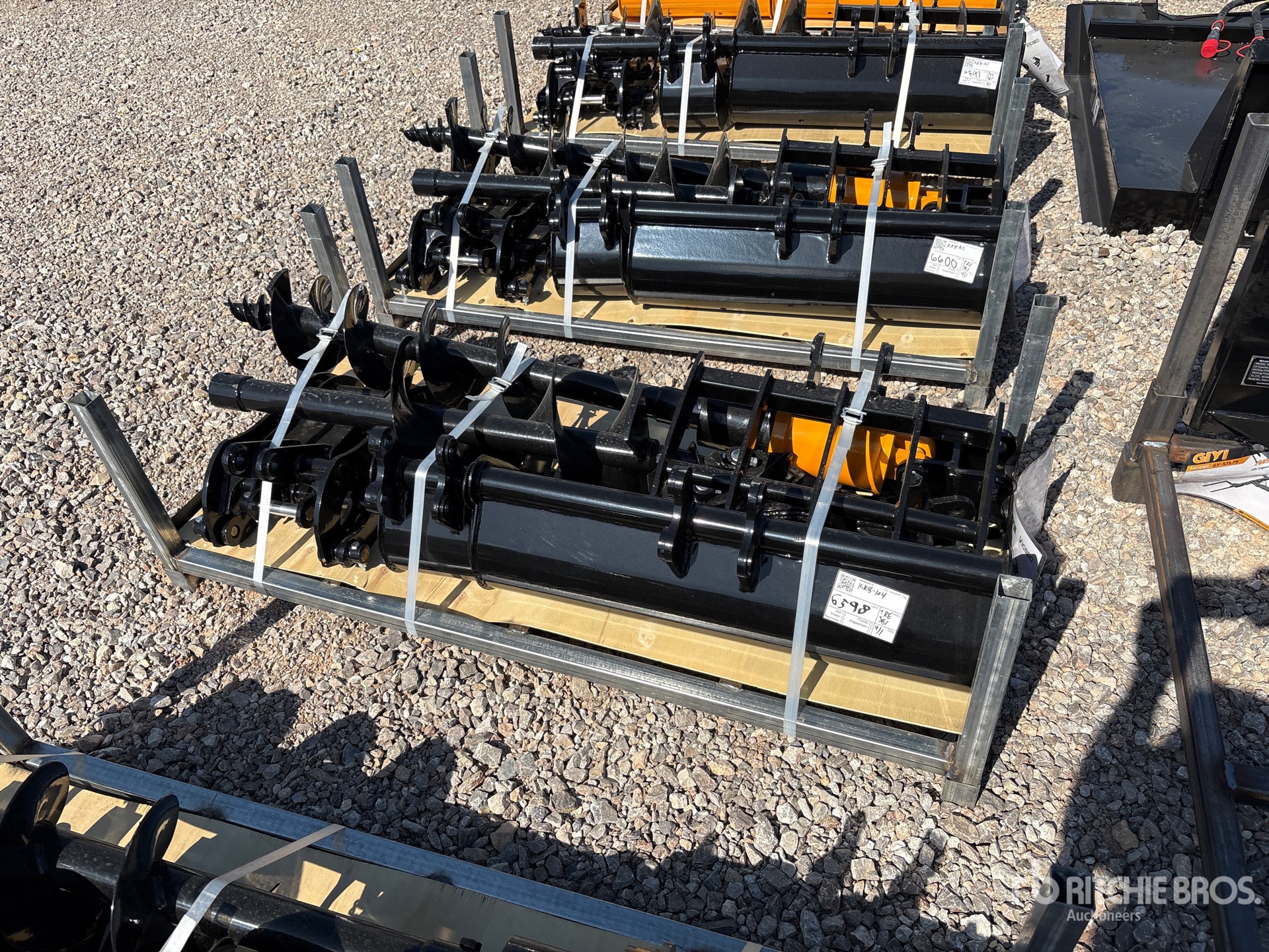 Rake, ripper, grabber, 12 in auger, 16 in auger, 8 in narrow bucket; 24 in bucket, 32 in bucket
