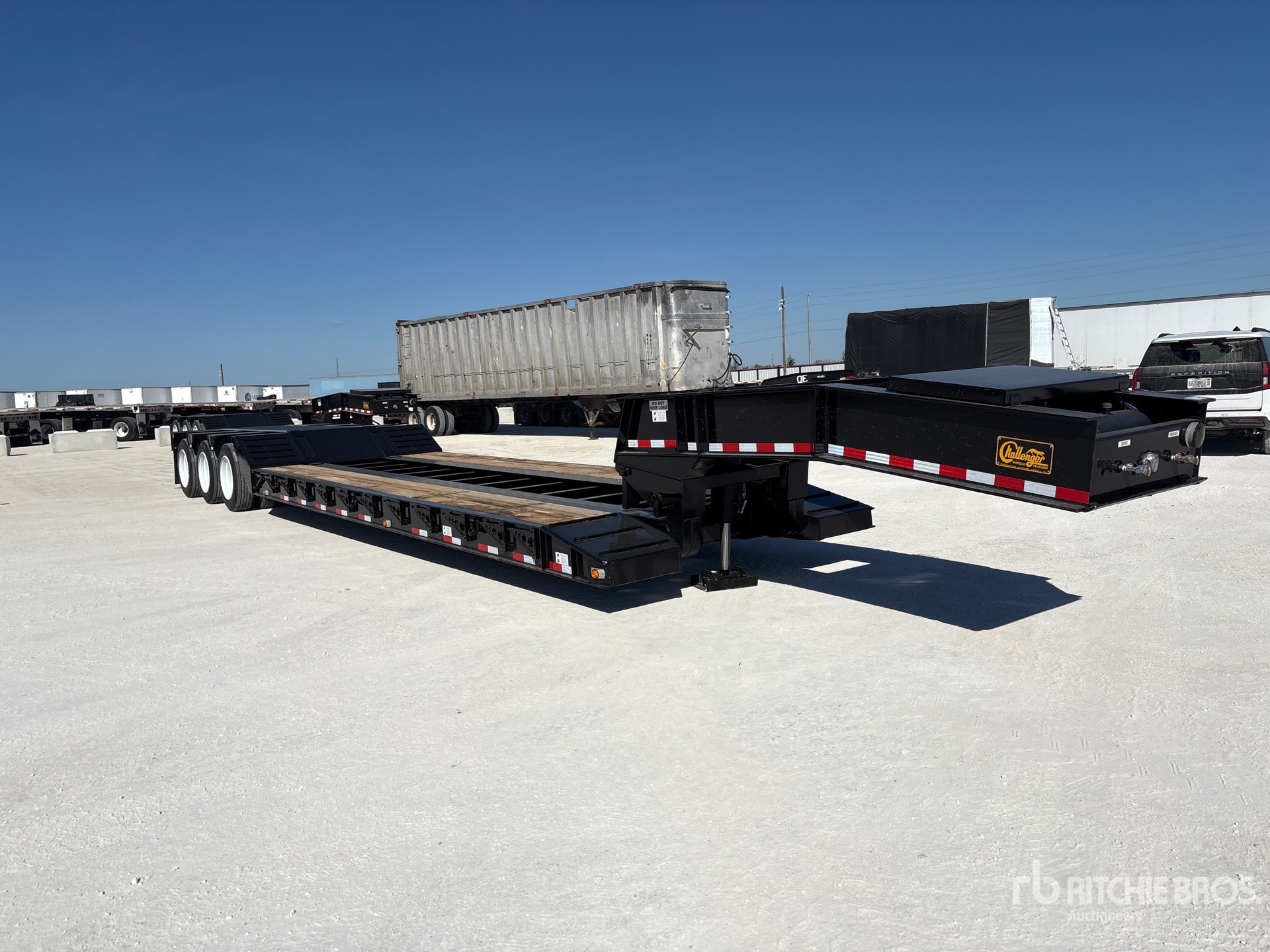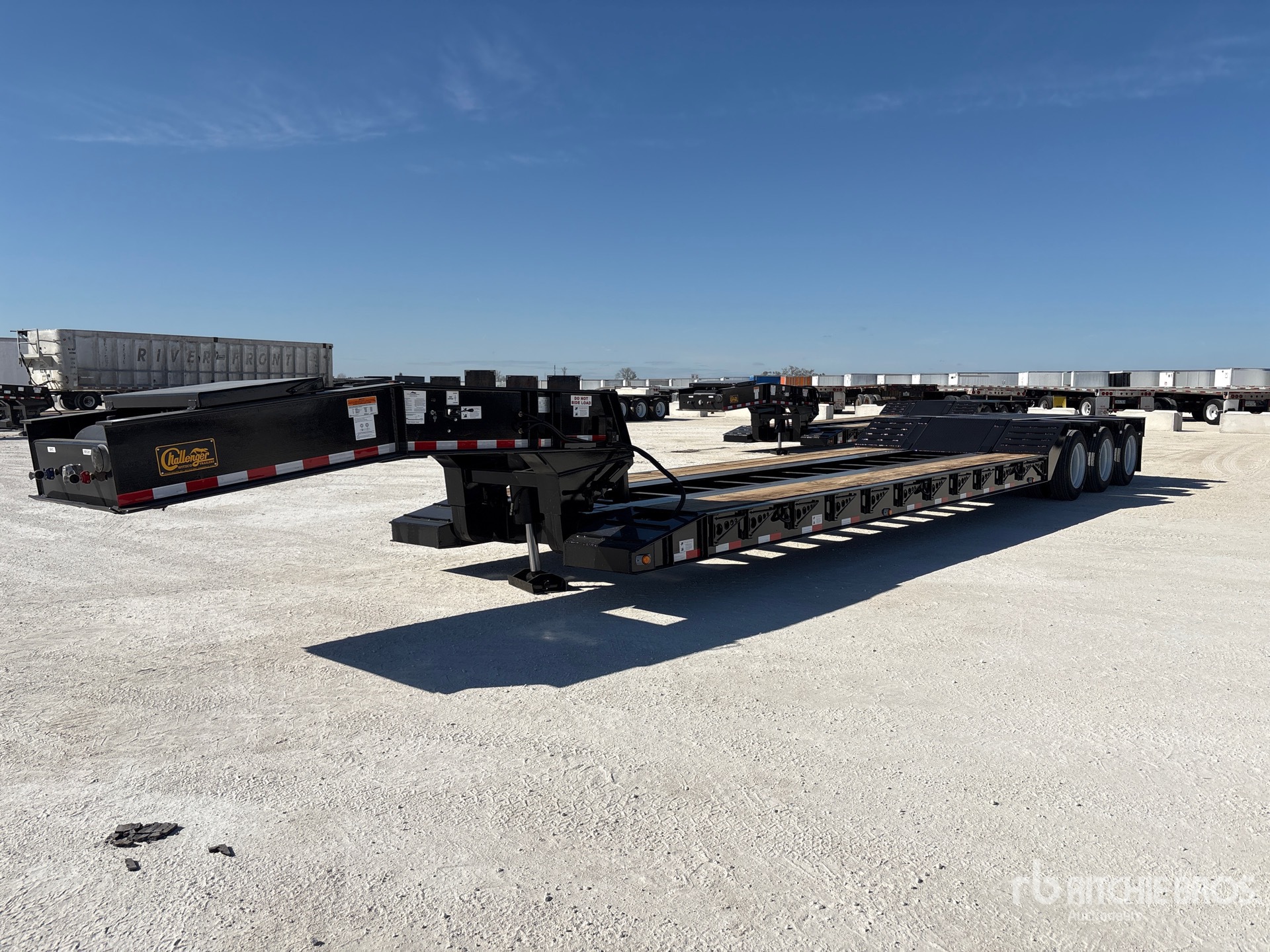 122540 lb GVWR, Hydraulic Removable Gooseneck, 22 ft 6 in x 102 in Main Deck, Folding Side Extensions, Spring Suspension