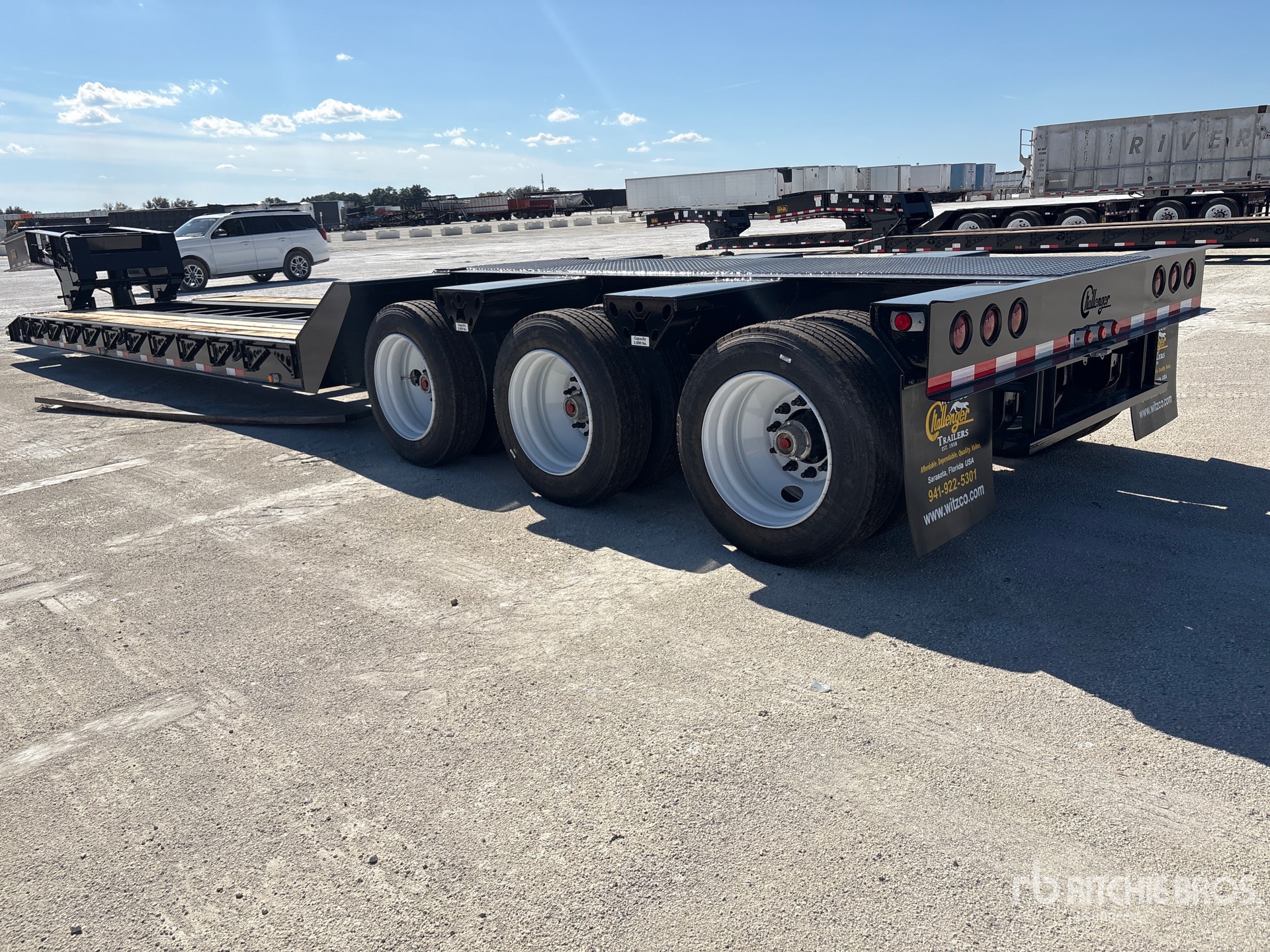 122540 lb GVWR, Hydraulic Removable Gooseneck, 23 ft 6 in x 102 in Main Deck, Folding Side Extensions, Air Ride Suspension