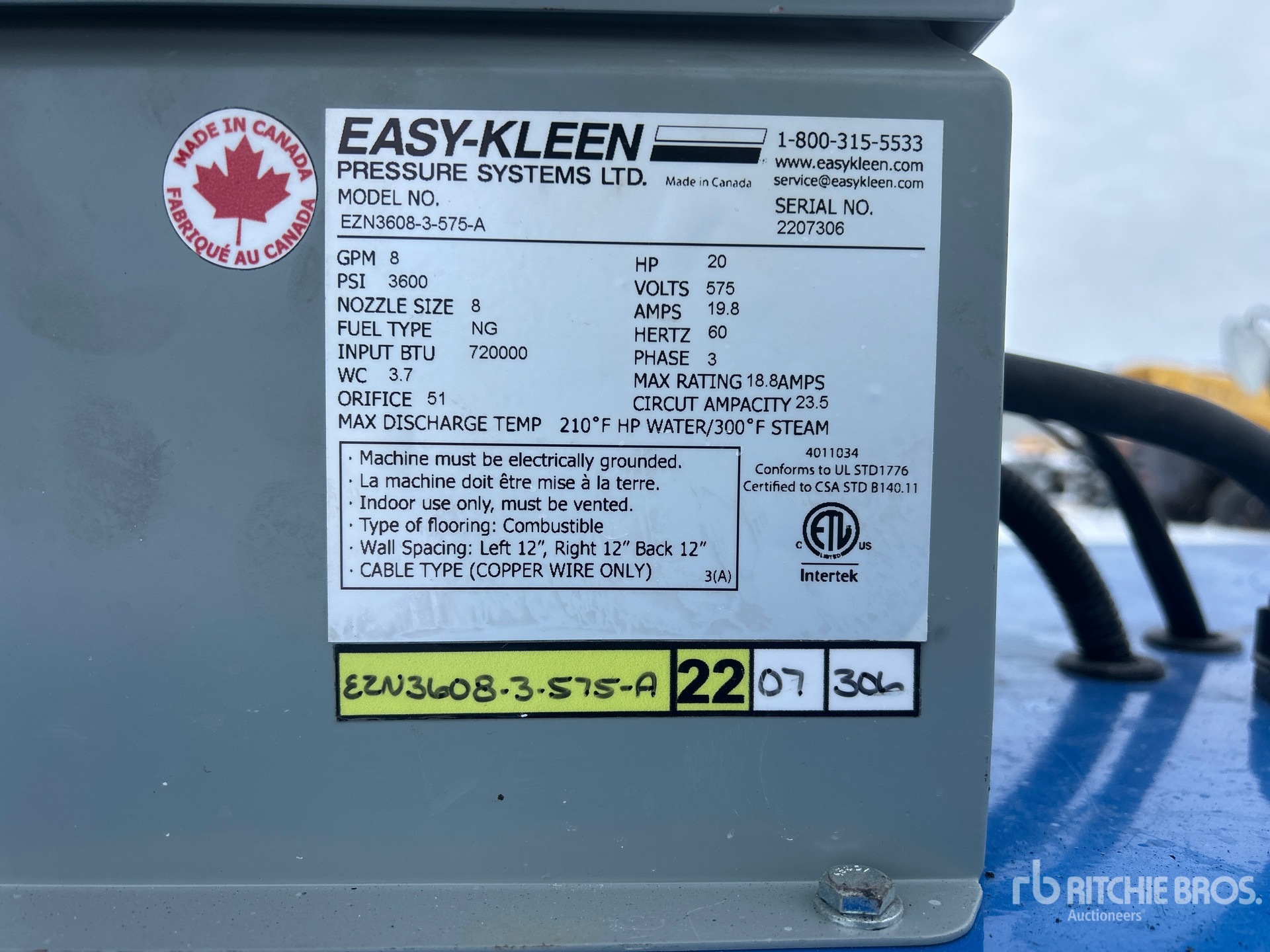 A qualified Ritchie Bros. employee collected detailed equipment information and performed functional tests on the key components of this asset. You, or a proxy, may also inspect any items on site prior to bidding on auction day.