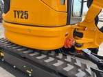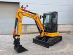 Enclosed Cab, Swing Boom, Auxiliary Hydraulic Plumbing, Backfill Blade, Rubber Tracks, Manual Quick Coupler, Digging Bucket