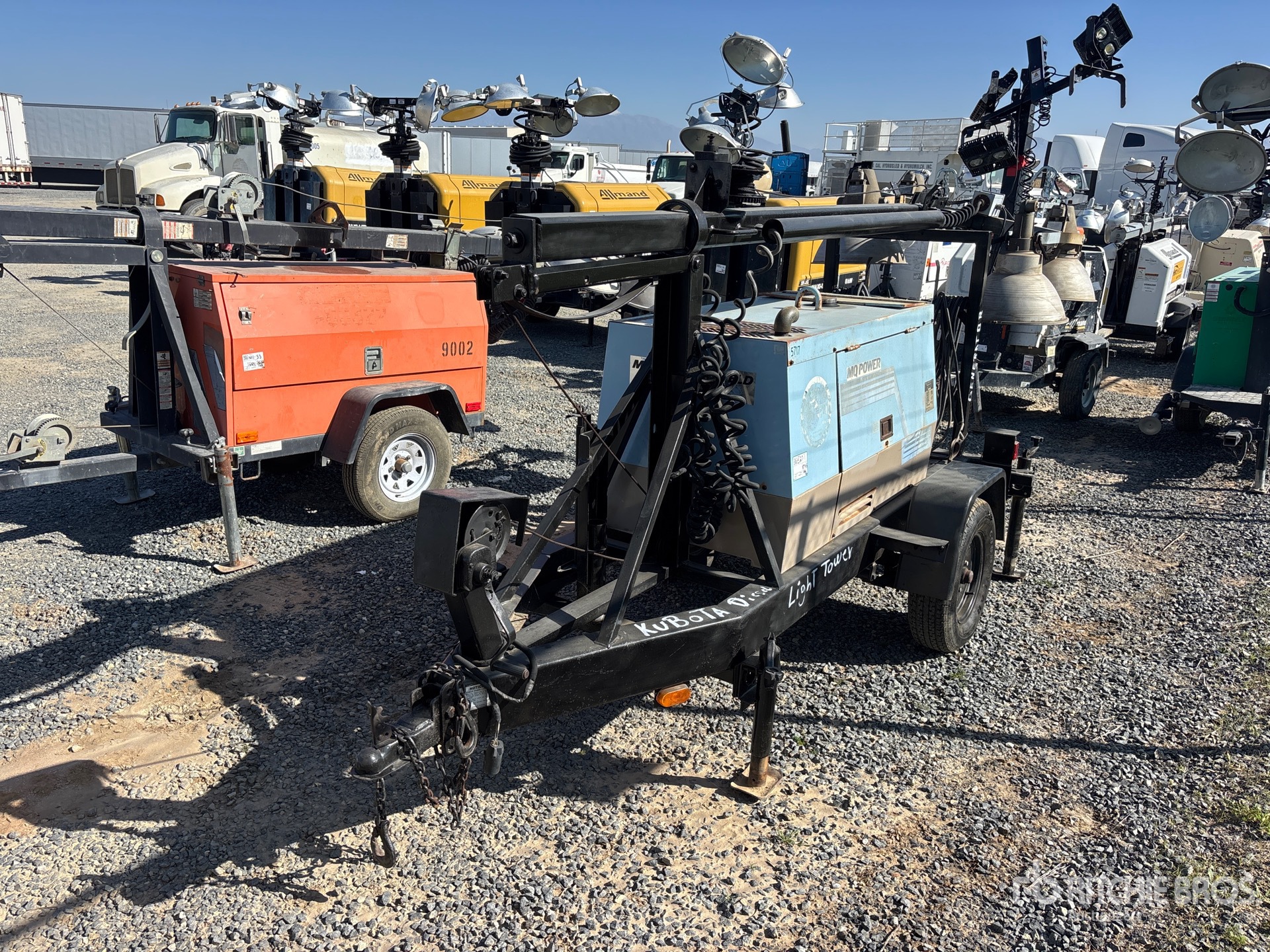 1995 US EPA Label, Kubota D722E 3 Cylinder 18.8 hp 718.5 cc Diesel Engine, /10.5 kW Rated Single Phase Output, 120 V / 240 V Rated Voltage, Ball Hitch Carrier Trailer