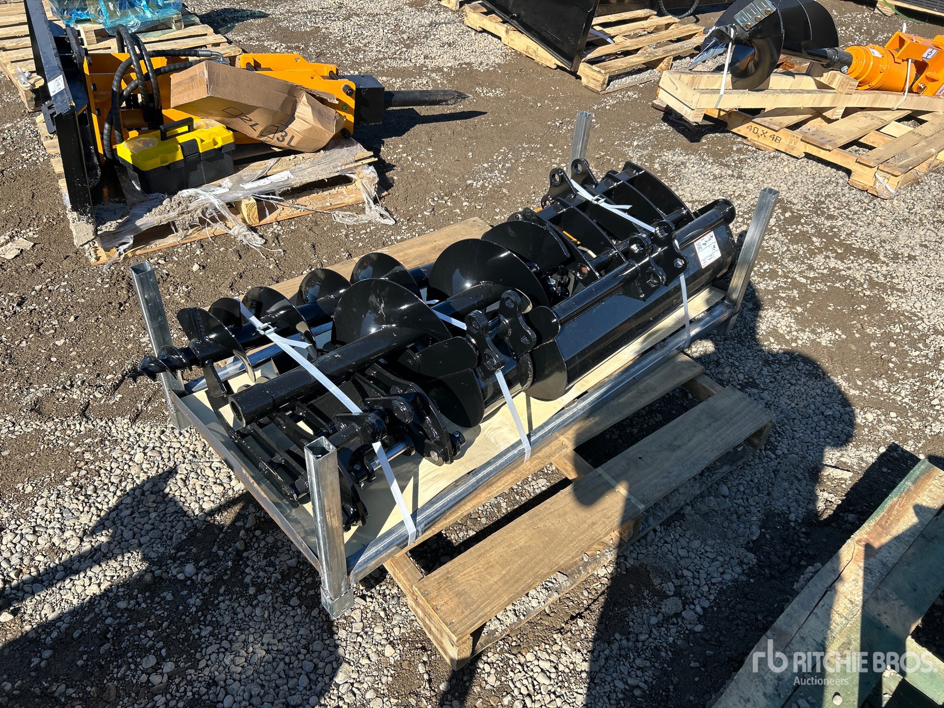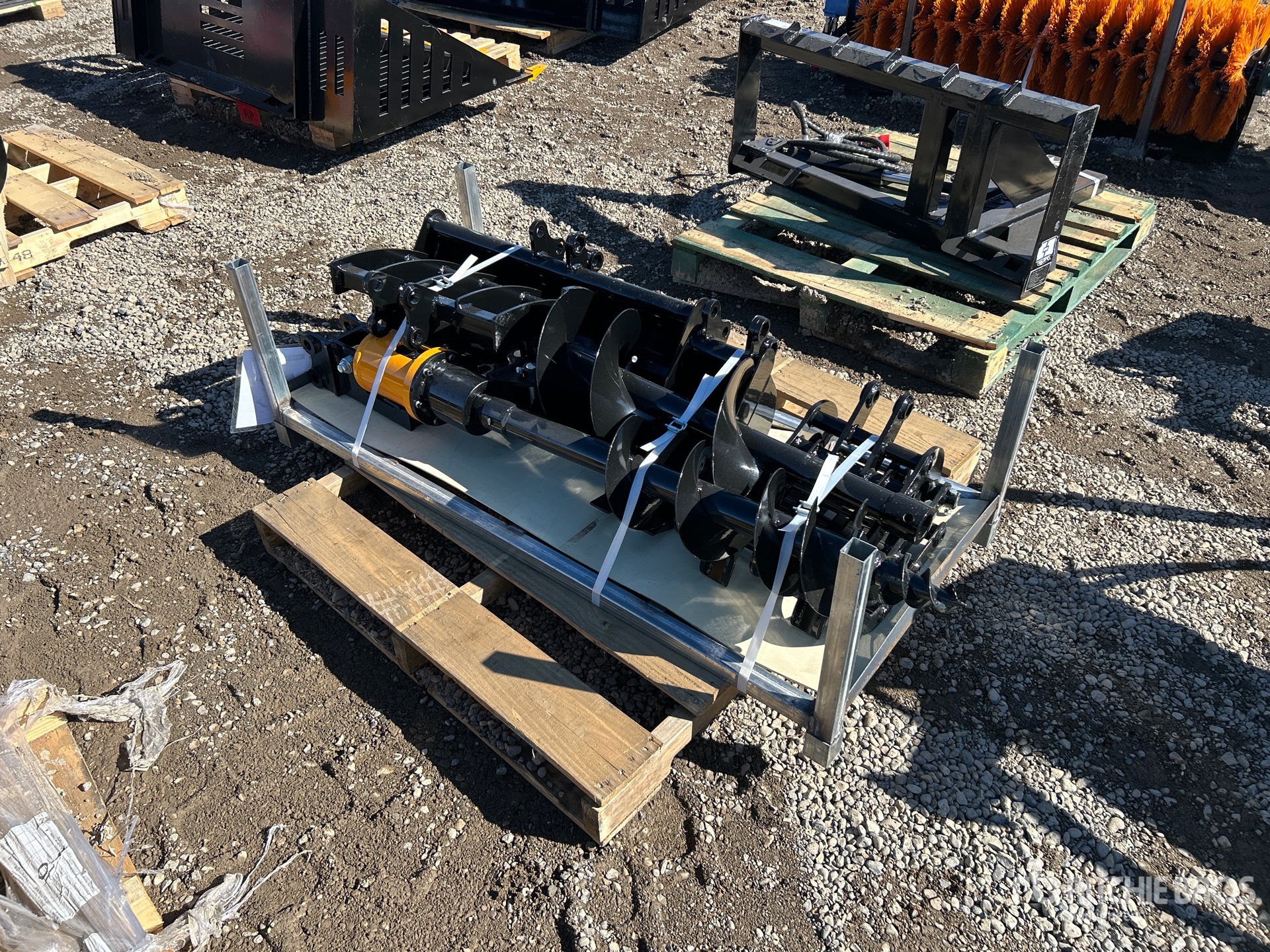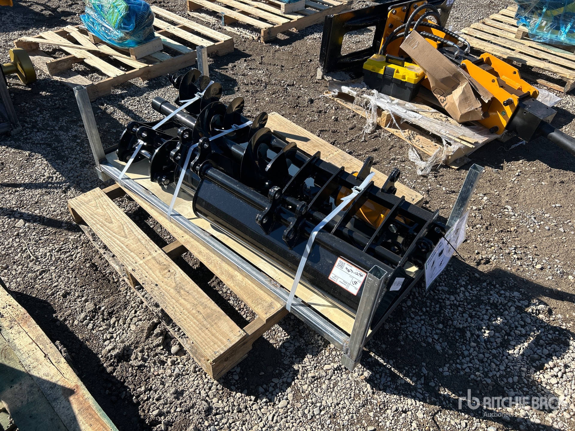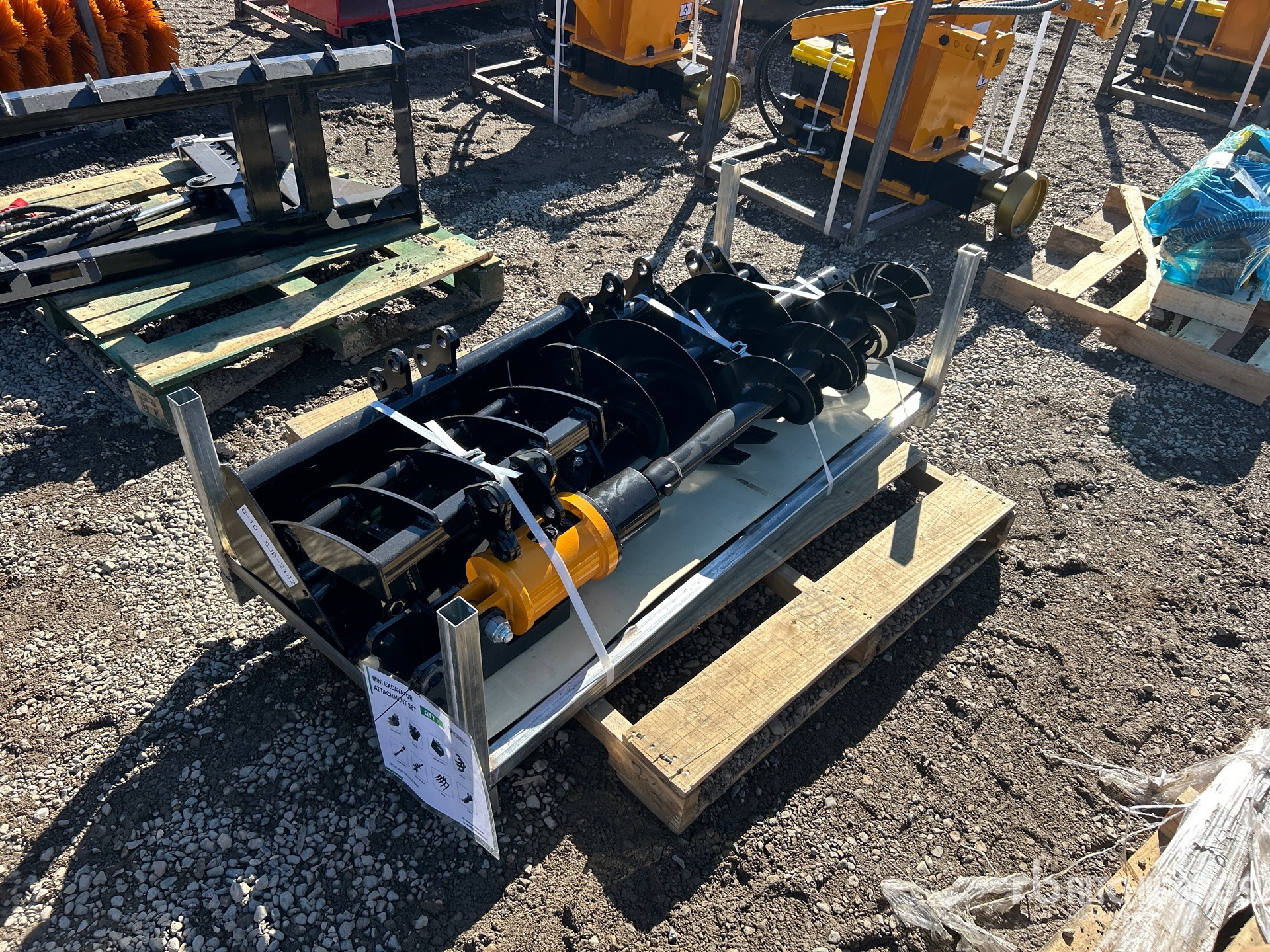 Quick Coupler, Rake, Grabber, (1) 8 in Bucket, (1) 32 in Bucket, Auger w/ (1) 8 in & (1) 12 in Bit, Ripper, Product images displayed are stock photos. Item is new/unused.