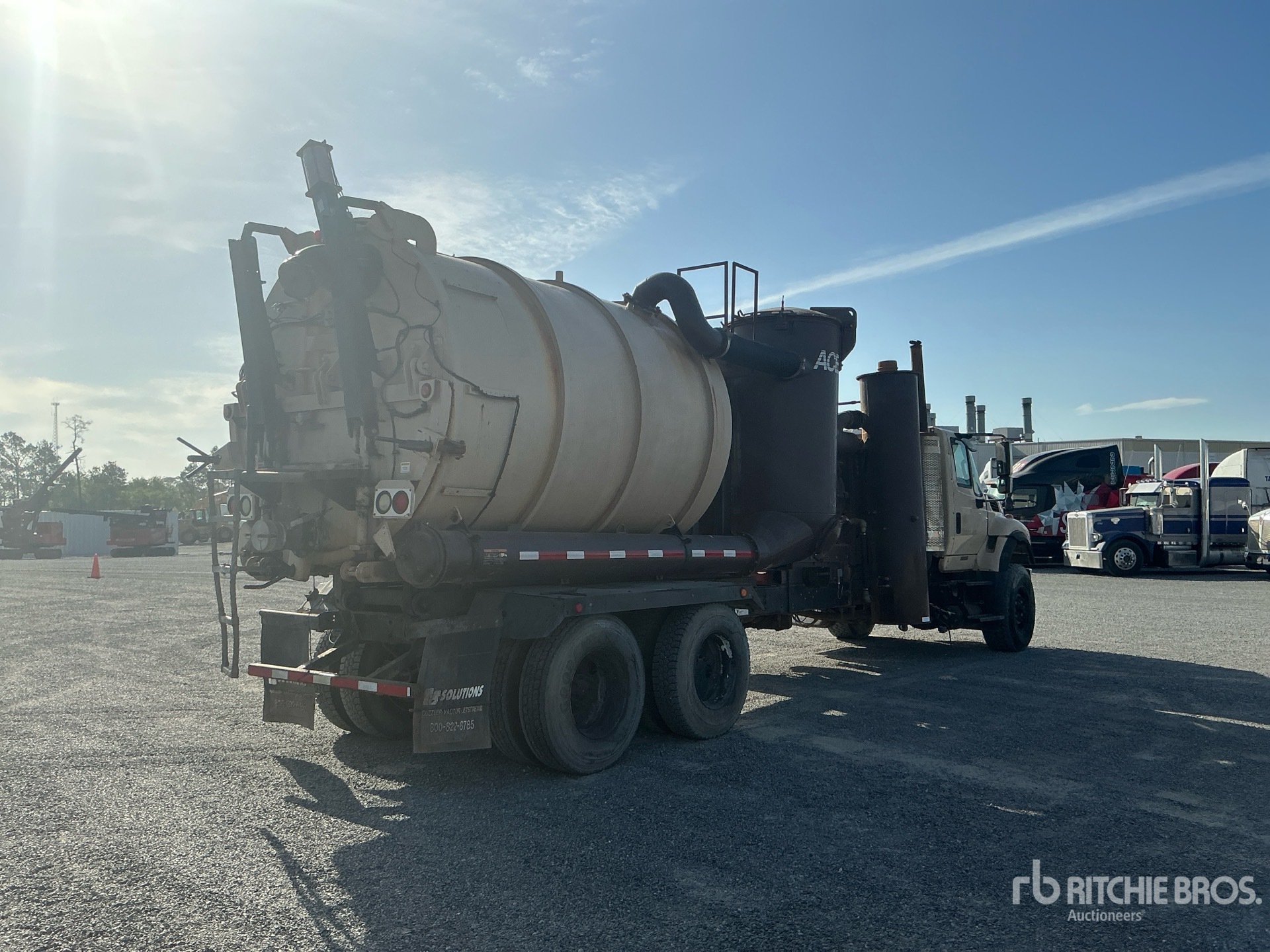 Located in Lane 33 Spot 7, Cat 12.5 L Diesel Engine, 3869 Engine hrs, Eaton Fuller Manual Transmission, 20000 lb Front Axle, 46000 lb Rears, 66000 lb GVWR, 425/65R22.5, Double Frame, Air Ride Suspension, 302 in Wheelbase, PTO, Steel Debris Tank, Hoist, Hydraulic Lift Tailgate, Manual Tailgate Locks, Blower